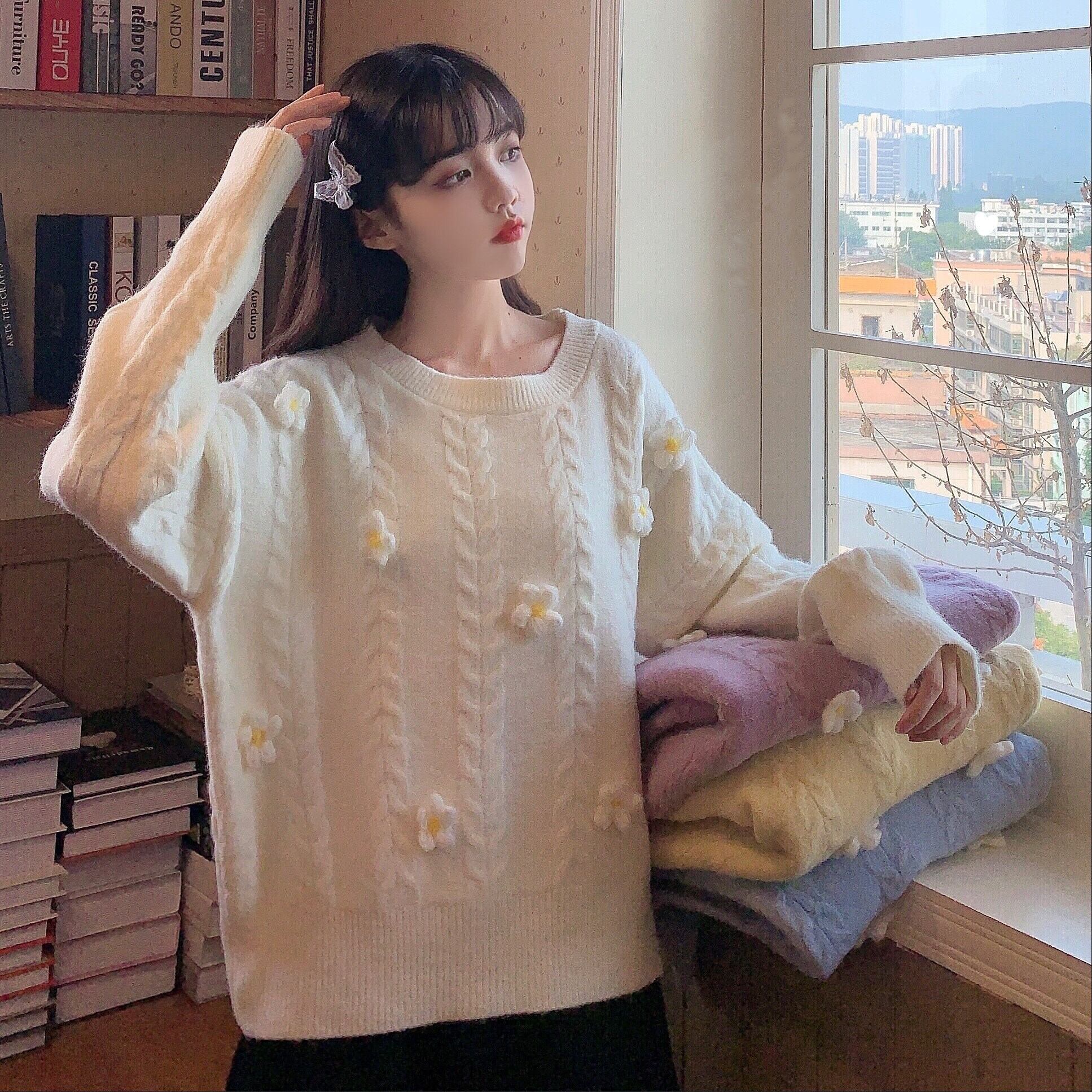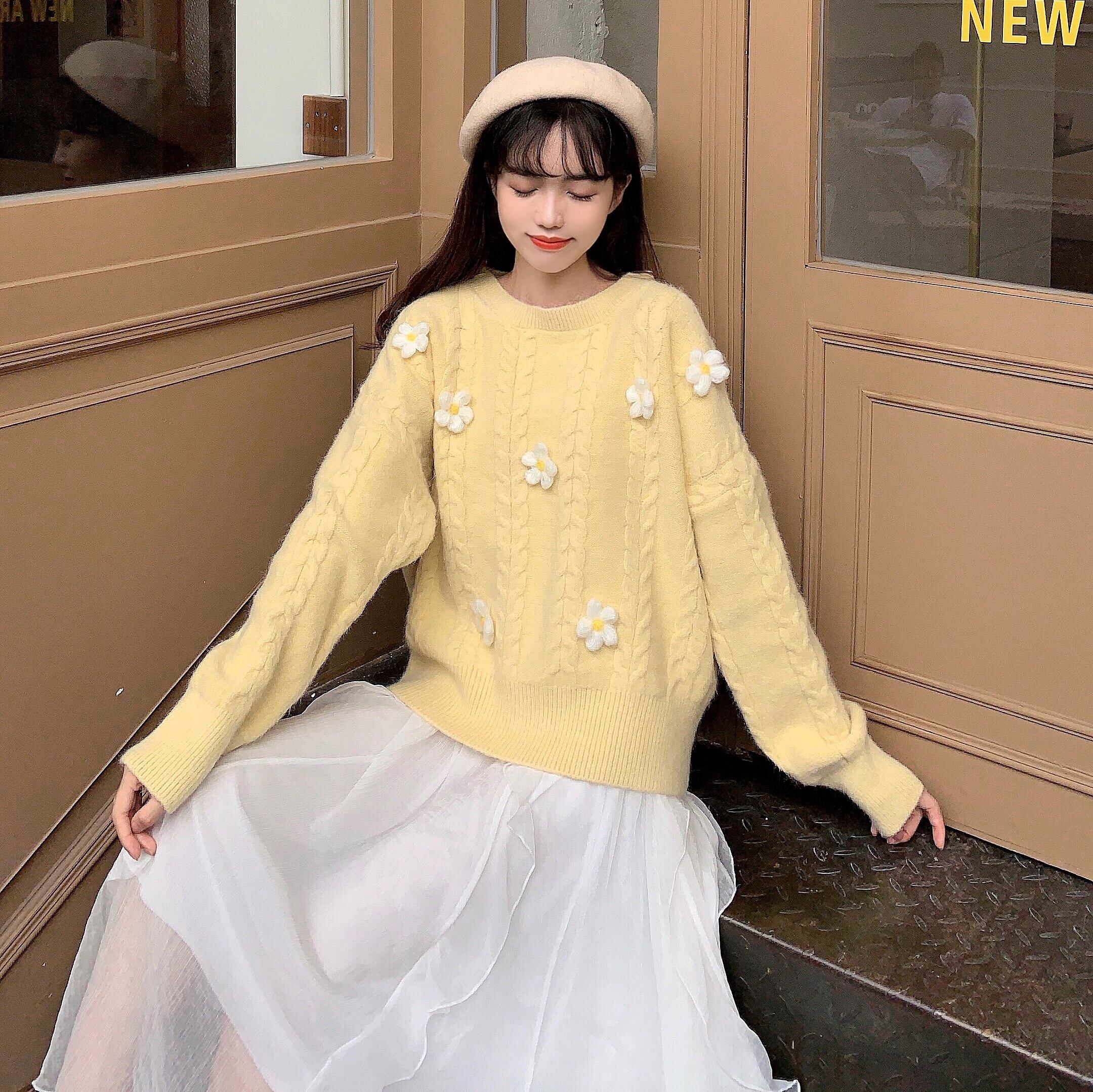 スタンダードラウンドネックニットニット セーターレディース ロング マキシロング丈 マキシ丈 レトロ かわいい 可愛い ガーリー 大人可愛い 大人かわいい フェミニン 大人ガーリー 花柄 お花 フラワー ステッチ 女性 レディース ゆめかわ50084327641 | nice import1