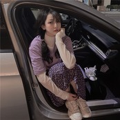 ラウンドネックTシャツ スタイル花柄 お花 フラワーロング マキシ ロング丈 マキシ丈スカート ショート ショート丈 ミニ ミニ丈 マキシロング丈 かわいい 可愛い ガーリー 大人可愛い 大人かわいい フェミニン 大人ガーリー パープル 女性 レディース ゆめかわ715351548 | nice import1