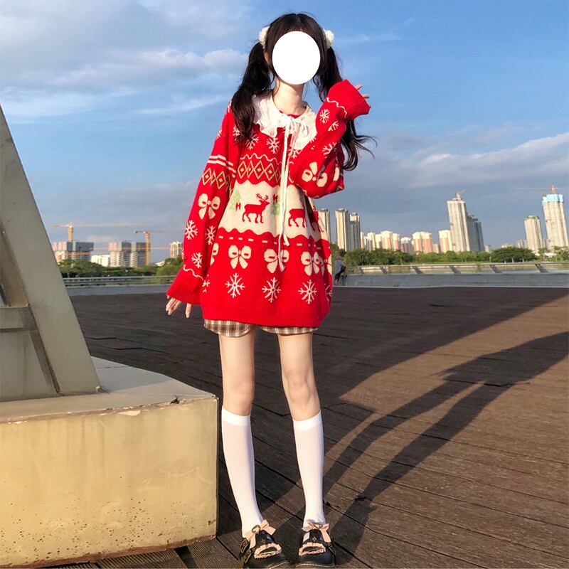 ニット セーターレディースレッド 赤ジャカード長袖 長そでスリーブ 袖プルオーバー トップス ロング マキシロング丈 マキシ丈 かわいい 可愛い ガーリー 大人可愛い 大人かわいい フェミニン 大人ガーリー 女性 レディース ゆめかわ58654788802 | nice import1