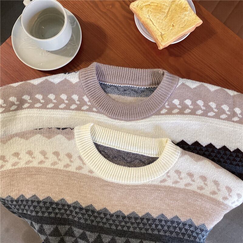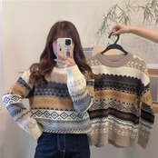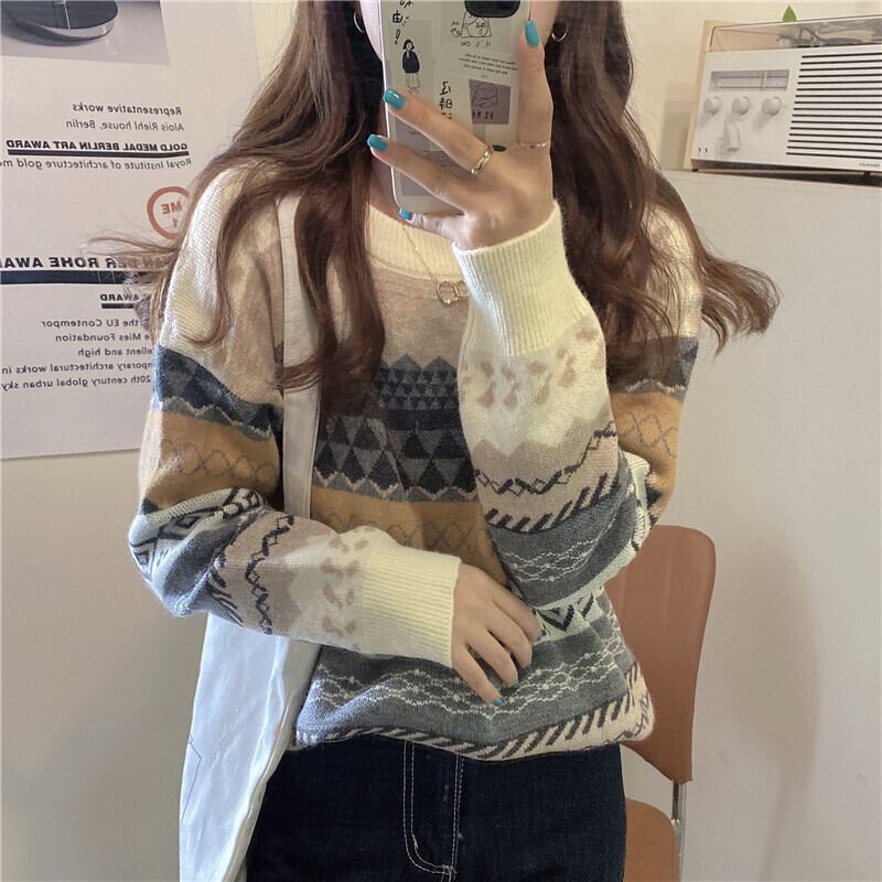 スタイルニット セーターレディーススタンダードジャカード長袖 長そでスリーブ 袖ラウンドネックプルオーバー ニットトップス ロング マキシロング丈 マキシ丈 レトロ 女性 レディース ゆめかわ11499087985 | nice import1