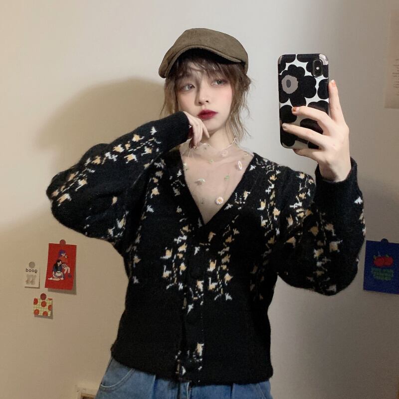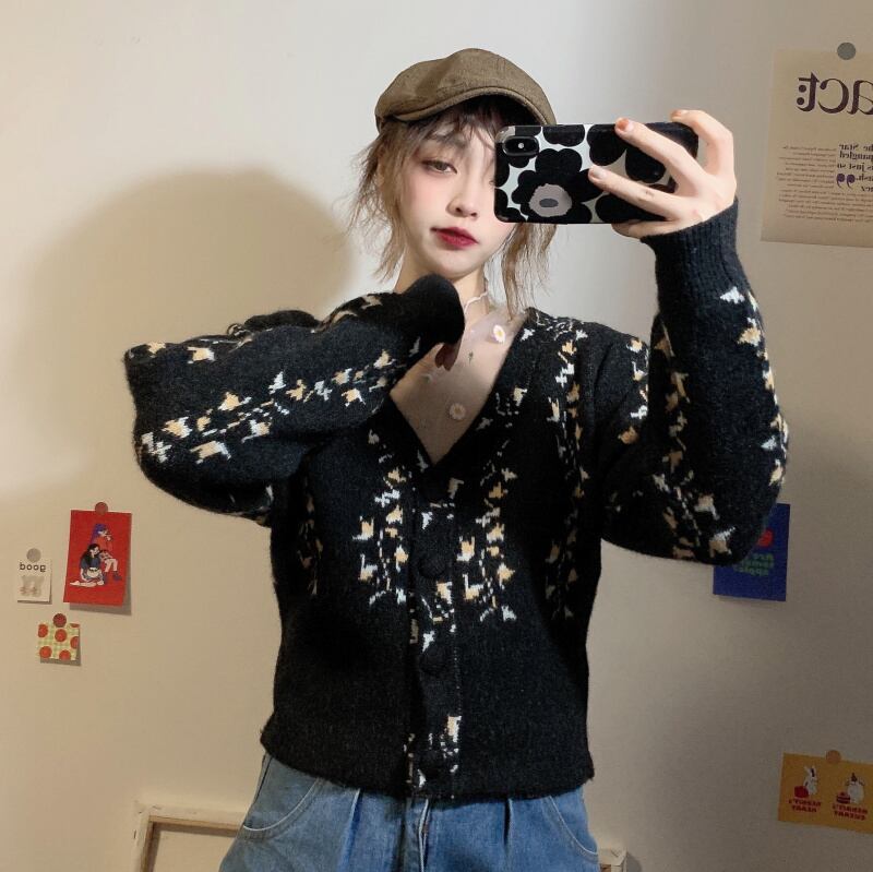 Vネックスタンダードジャカードショート ショート丈 ミニ ミニ丈長袖 長そでスリーブ 袖ニットニット セーターカーディガン 上着ジャケット 上着 コートレディース ロング マキシロング丈 マキシ丈 レトロ 女性 レディース ゆめかわ5900513834 | nice import1