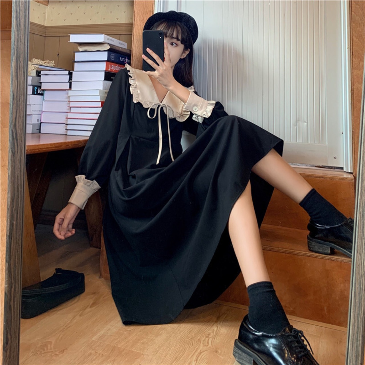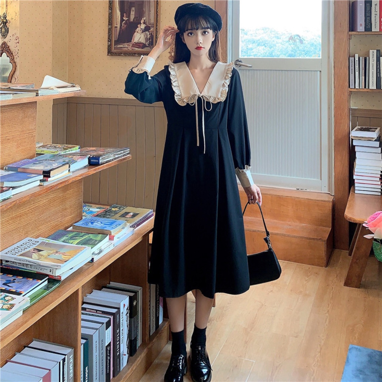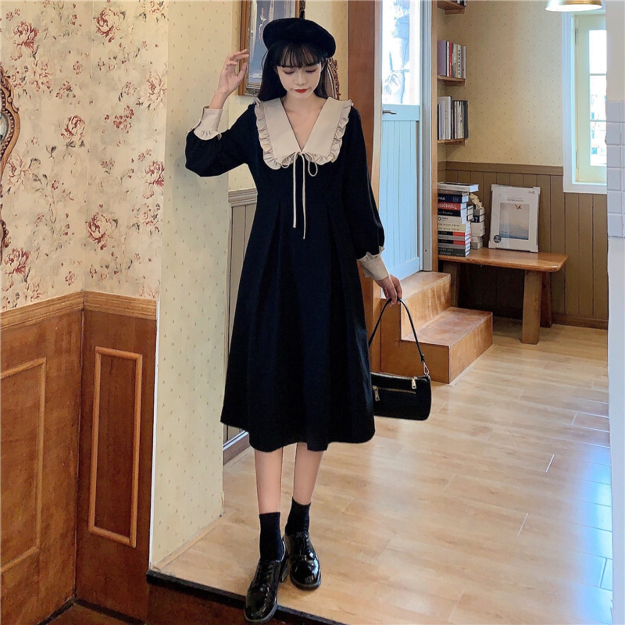 スタイルスタンダードカラーハイウエストウエストスリーブ 袖長袖 長そでドレス ワンピース ハイウェスト ロング マキシロング丈 マキシ丈 ランタンスリーブ バルーンスリーブ ランタン袖 バルーン袖 レトロ 女性 レディース ゆめかわ152562662 | nice import1