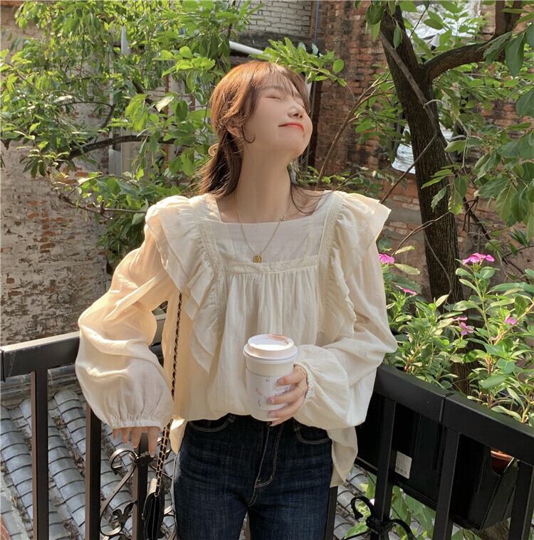 カラーラッフル フリルスリーブ 袖シャツ かわいい 可愛い ガーリー 大人可愛い 大人かわいい フェミニン 大人ガーリー スクウェア スクエア ステッチ 女性 レディース ゆめかわ5755746264 | nice import1