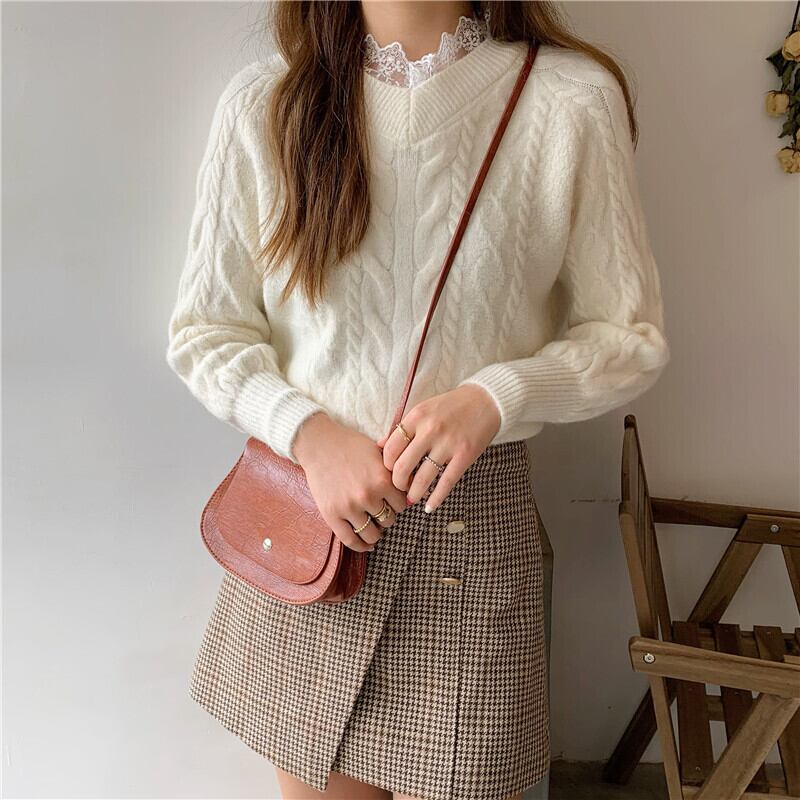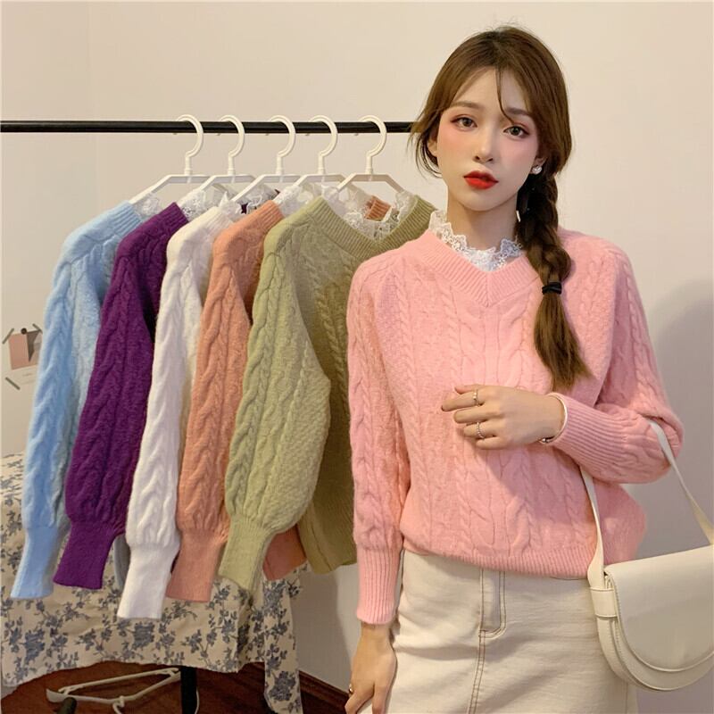 レースVネックトップス ルーズニットニット セーターレディース かわいい 可愛い ガーリー 大人可愛い 大人かわいい フェミニン 大人ガーリー ステッチ 女性 レディース ゆめかわ6281067807 | nice import1