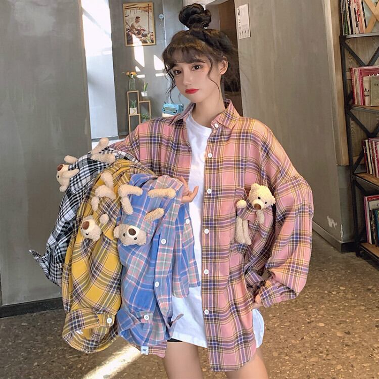 シャツ レディースポケット格子柄 チェックルーズカーディガン 上着トップス ロング マキシロング丈 マキシ丈 かわいい 可愛い ガーリー 大人可愛い 大人かわいい フェミニン 大人ガーリー 女性 レディース ゆめかわ98742935601 | nice import1