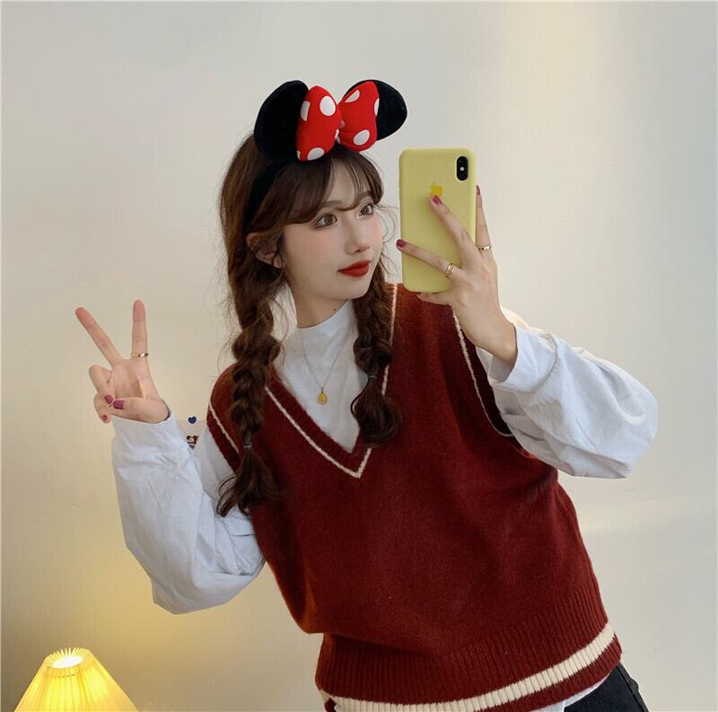 ニット セーターレディースカラーストライプVネックノースリーブプルオーバー ニット 袖なし 女性 レディース ゆめかわ62140061655