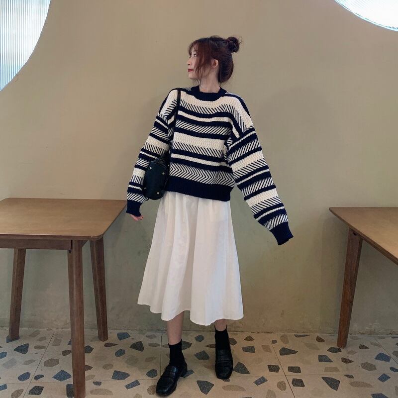 スタンダードストライプルーズカジュアルニットトップス スタイルニット セーターレディース ロング マキシロング丈 マキシ丈 レトロ 女性 レディース ゆめかわ78073733864 | nice import1