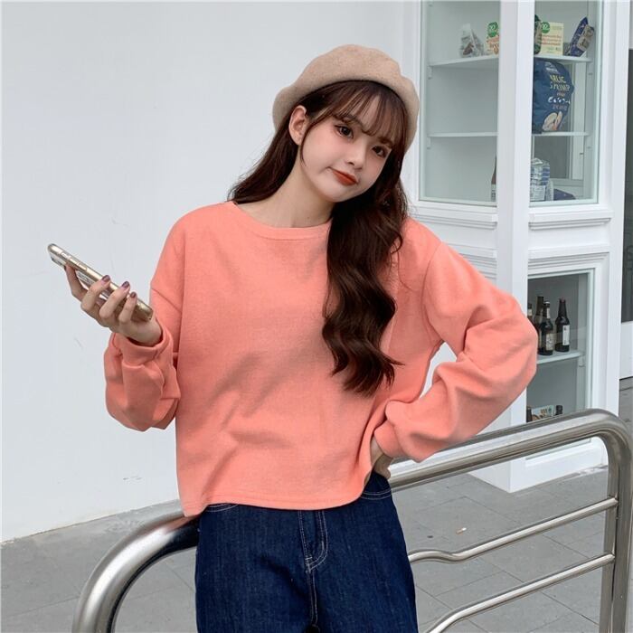 ラウンドネックベーシックソリッド カラーニット セーターショート ショート丈 ミニ ミニ丈ルーズ薄手スタイルシャツ ロング マキシロング丈 マキシ丈 ソリッドカラー 女性 レディース ゆめかわ38216510882 | nice import1