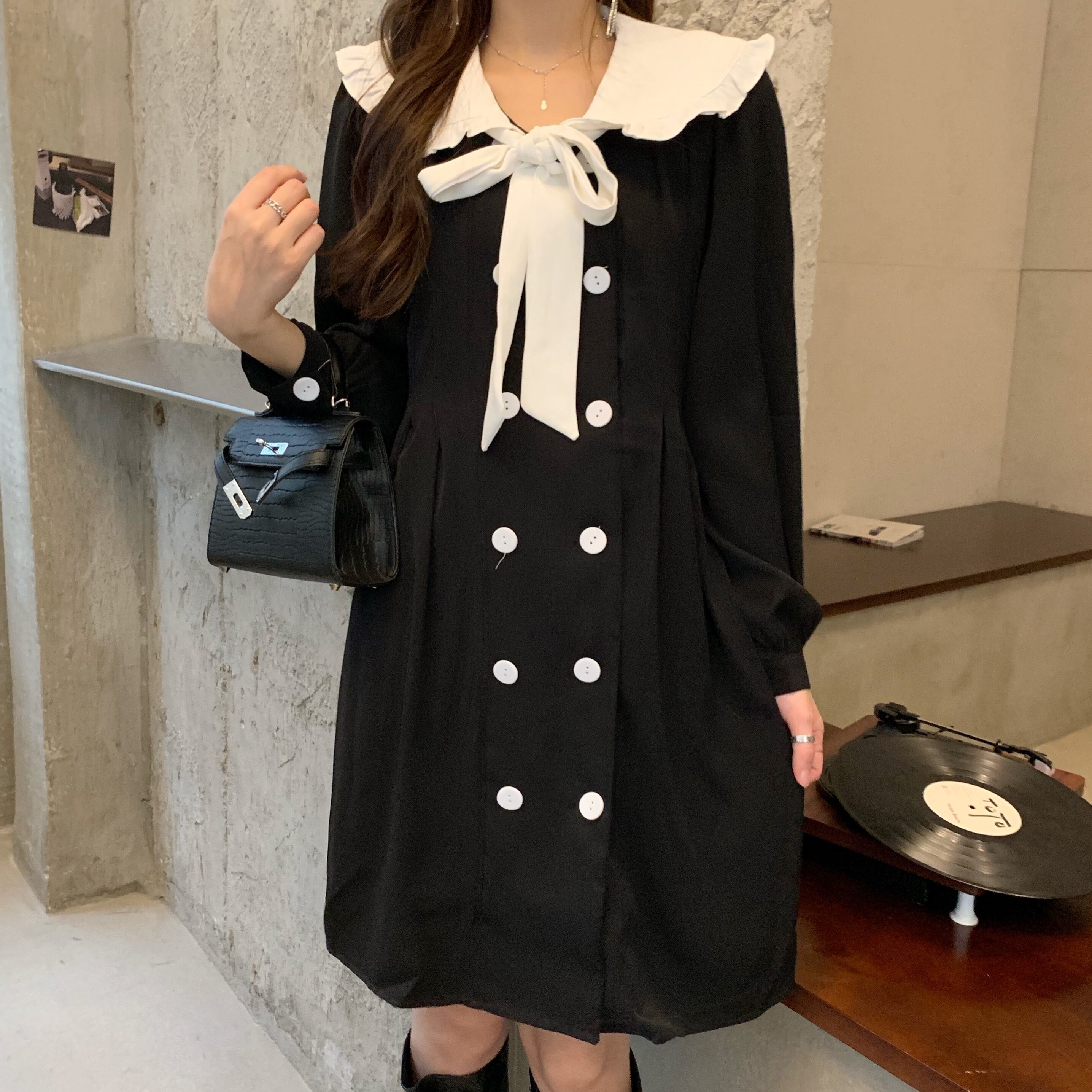 スタイルカラーリボン長袖 長そでスリーブ 袖ダブルブレストドレス ワンピース ロング マキシロング丈 マキシ丈 かわいい 可愛い ガーリー 大人可愛い 大人かわいい フェミニン 大人ガーリー 女性 レディース ゆめかわ8976000046 | nice import1