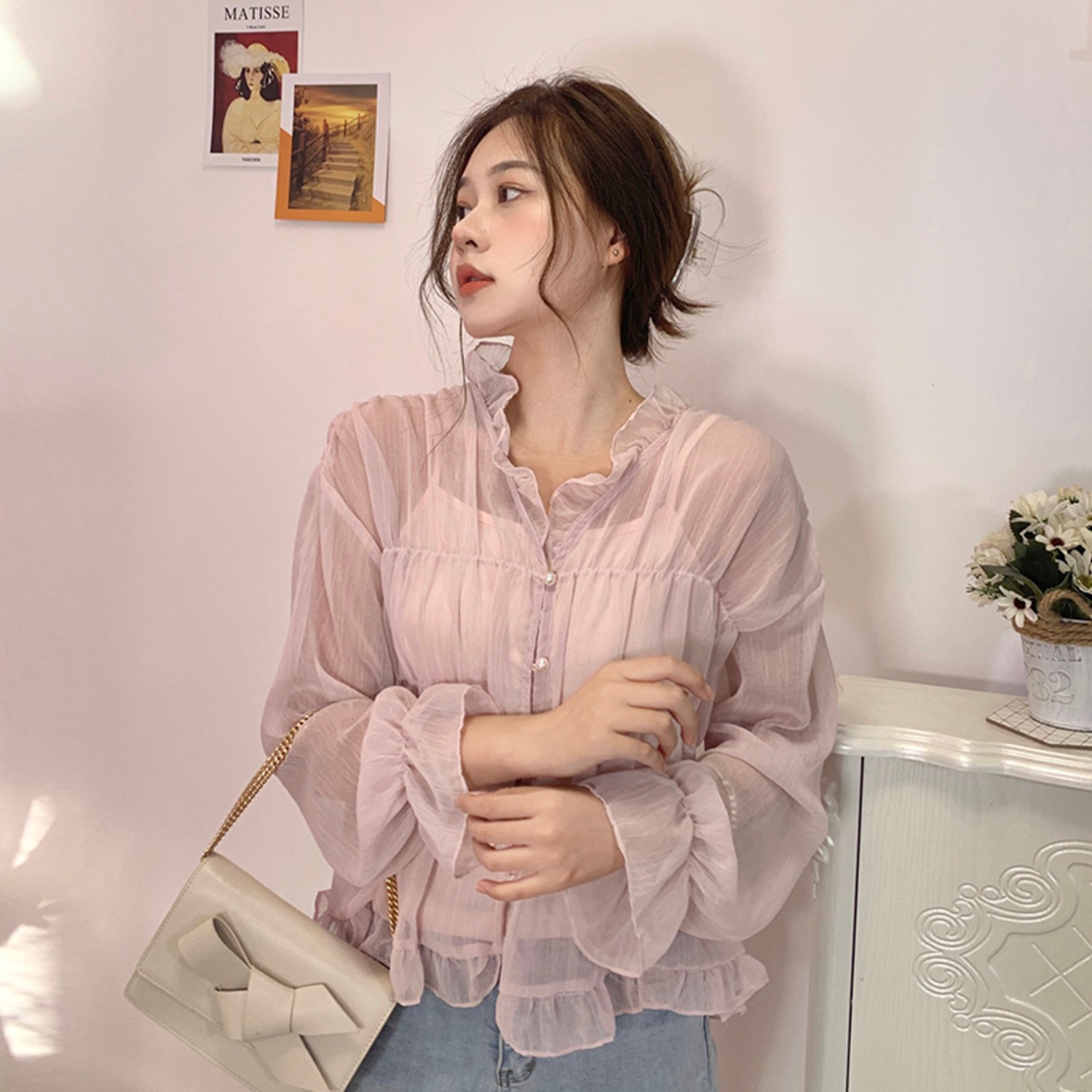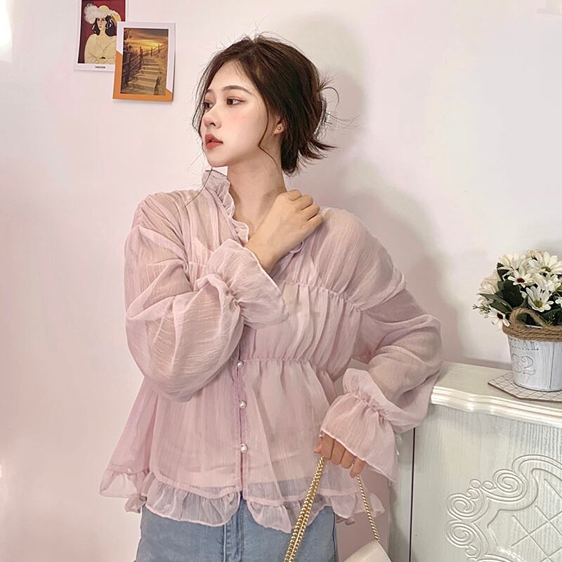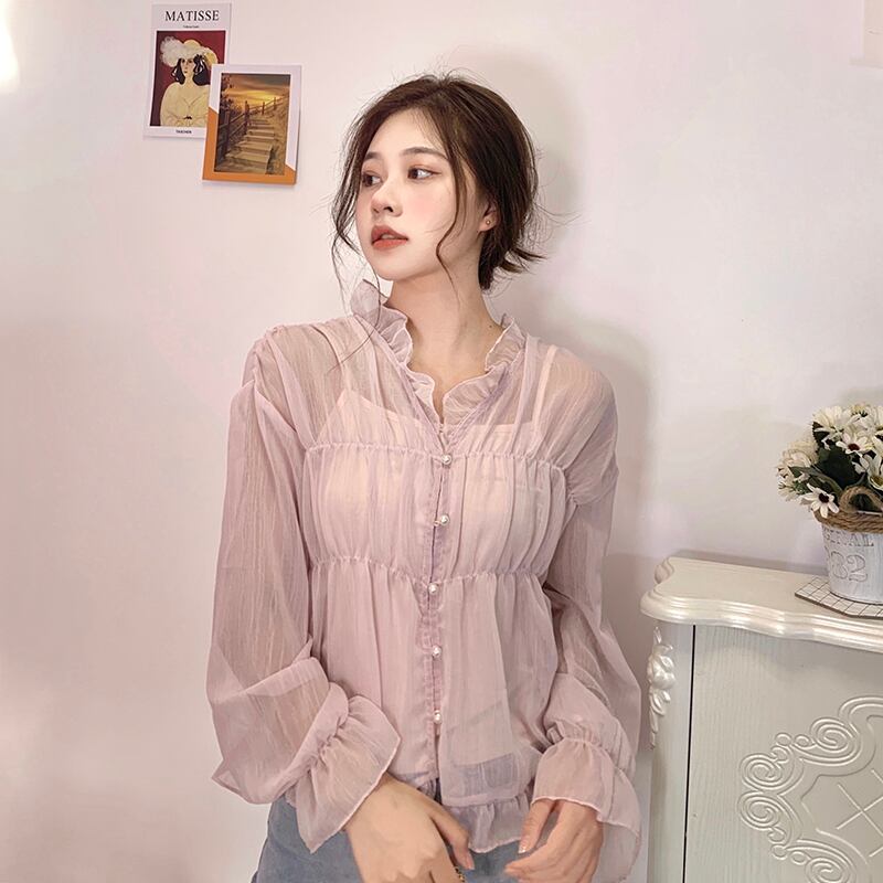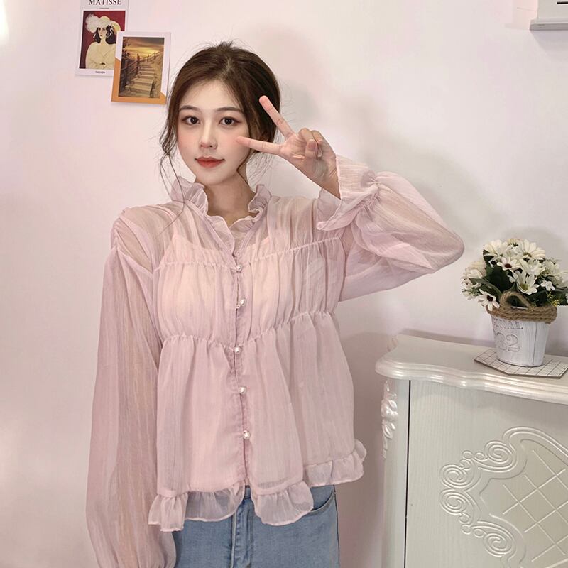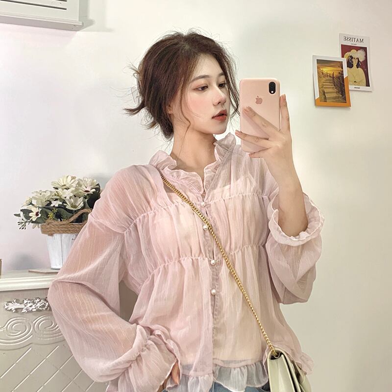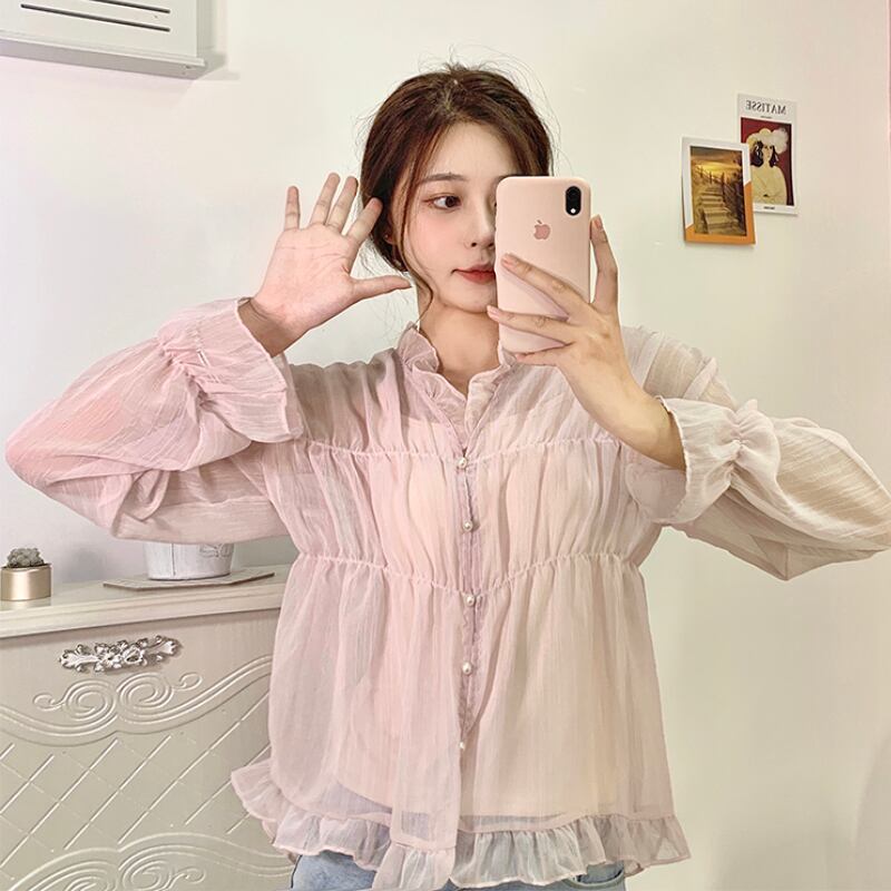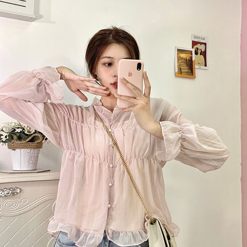シャツ シフォントップス レディース ロング マキシロング丈 マキシ丈 ピンク かわいい 可愛い ガーリー 大人可愛い 大人かわいい フェミニン 大人ガーリー 女性 レディース ゆめかわ43148359359 | nice import1