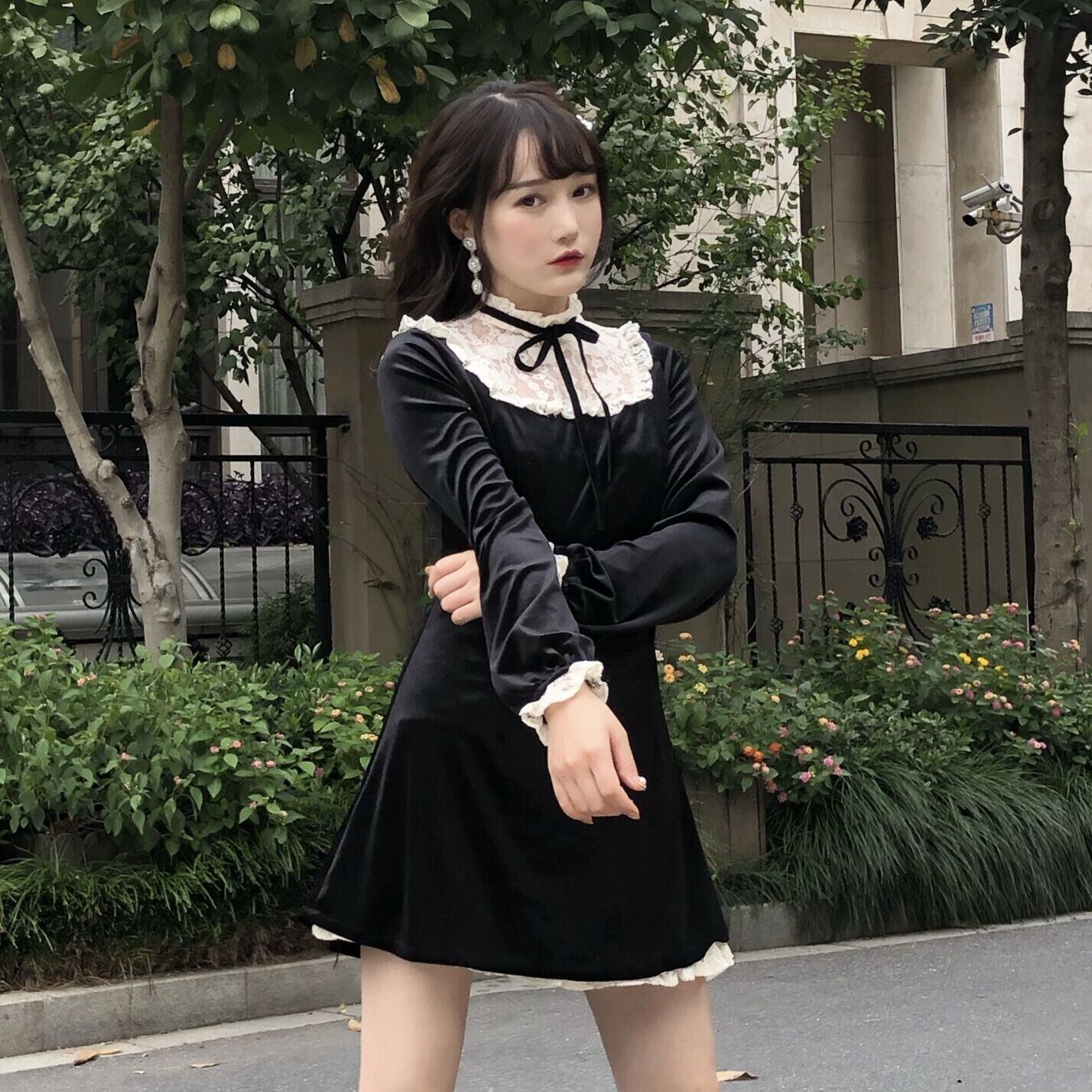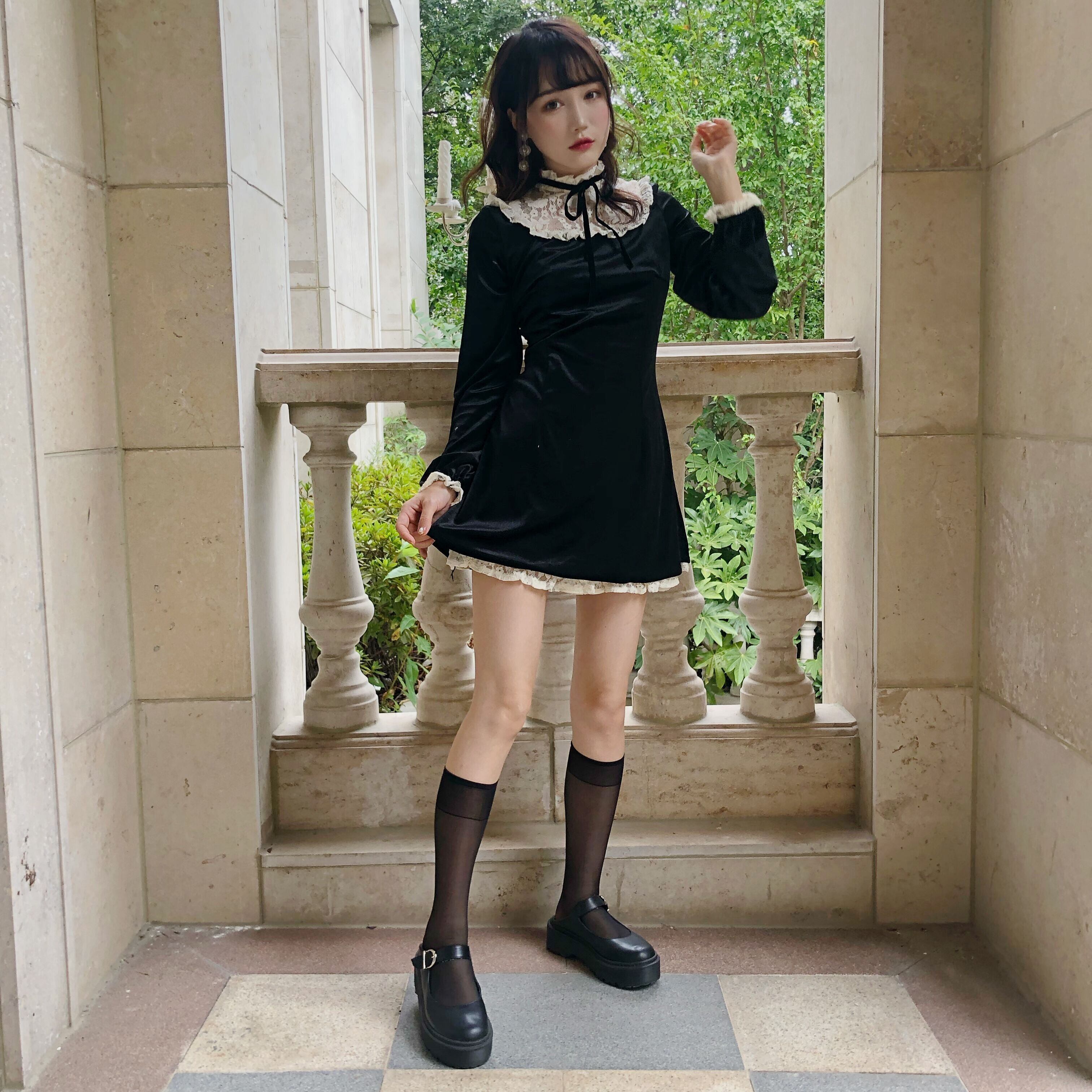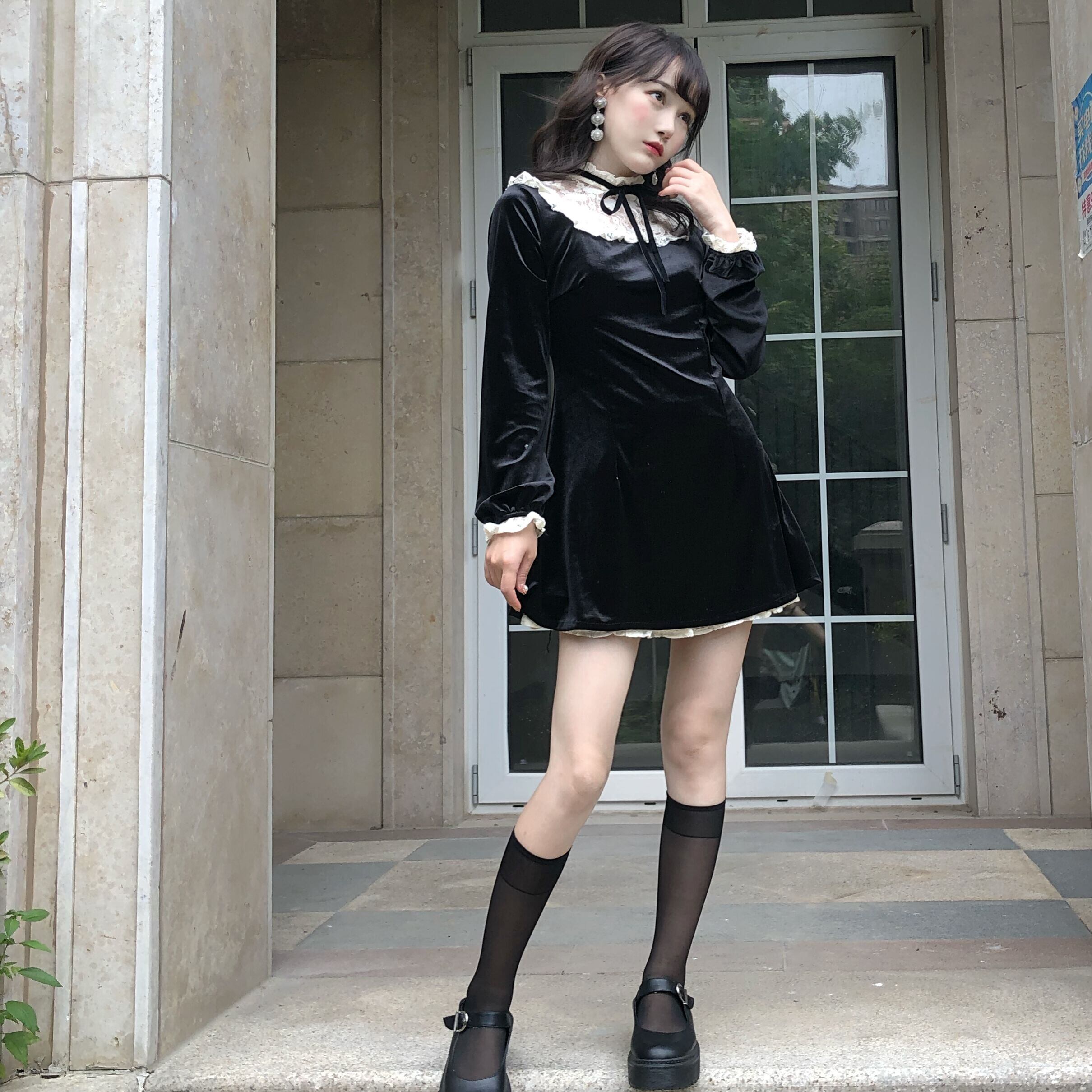 ベルベットブラック 黒ドレス ワンピースカラーレースハイウエスト ロング マキシロング丈 マキシ丈 かわいい 可愛い ガーリー 大人可愛い 大人かわいい フェミニン 大人ガーリー ステッチ 女性 レディース ゆめかわ92375219315 | nice import1