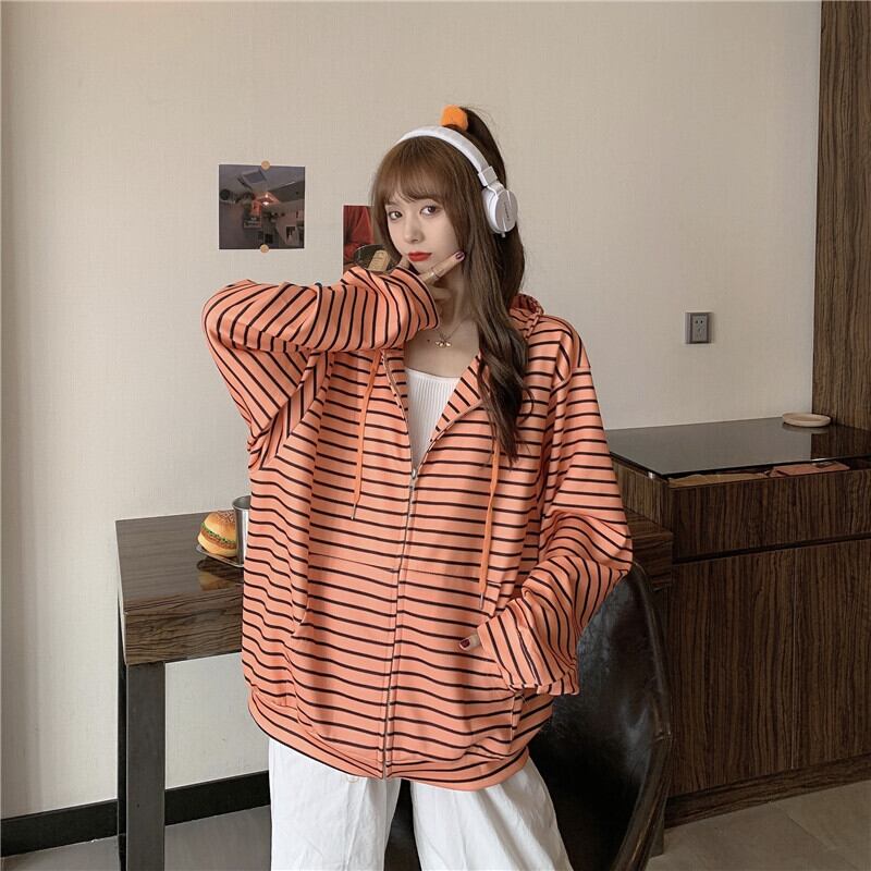 ルーズストライプカジュアルカラースタイルフードカーディガン 上着ニット セータージャケット 上着 コート ロング マキシロング丈 マキシ丈 女性 レディース ゆめかわ81231599070 | nice import1