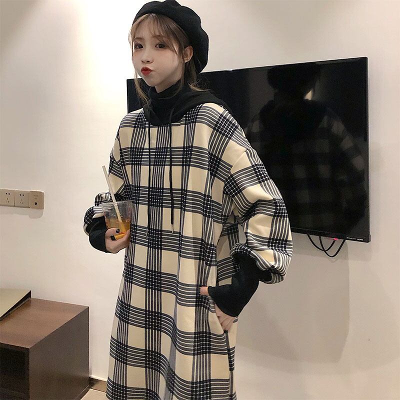 ニット セータースカート レディースルーズカラーフード長袖 長そでスリーブ 袖格子柄 チェックドレス ワンピース ロング マキシロング丈 マキシ丈 女性 レディース ゆめかわ35802651584 | nice import1