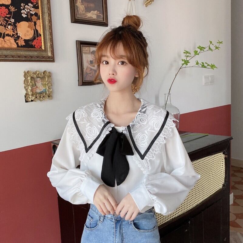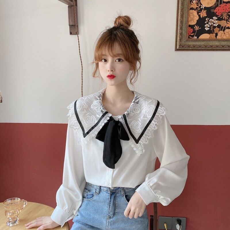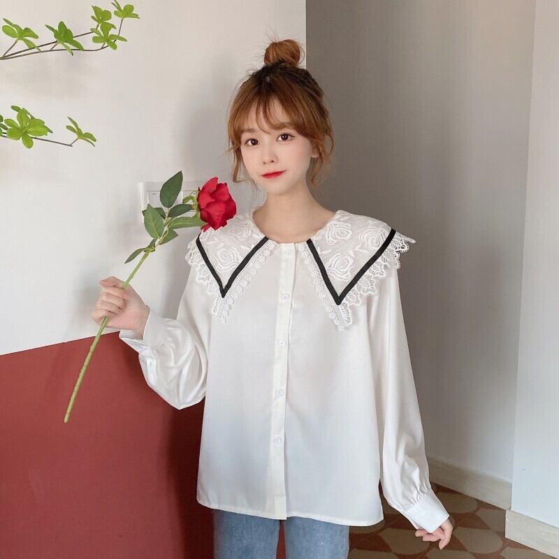 レースカラーシャツ リボンホワイト 白 ロング マキシロング丈 マキシ丈 かわいい 可愛い ガーリー 大人可愛い 大人かわいい フェミニン 大人ガーリー 女性 レディース ゆめかわ28024482262 | nice import1
