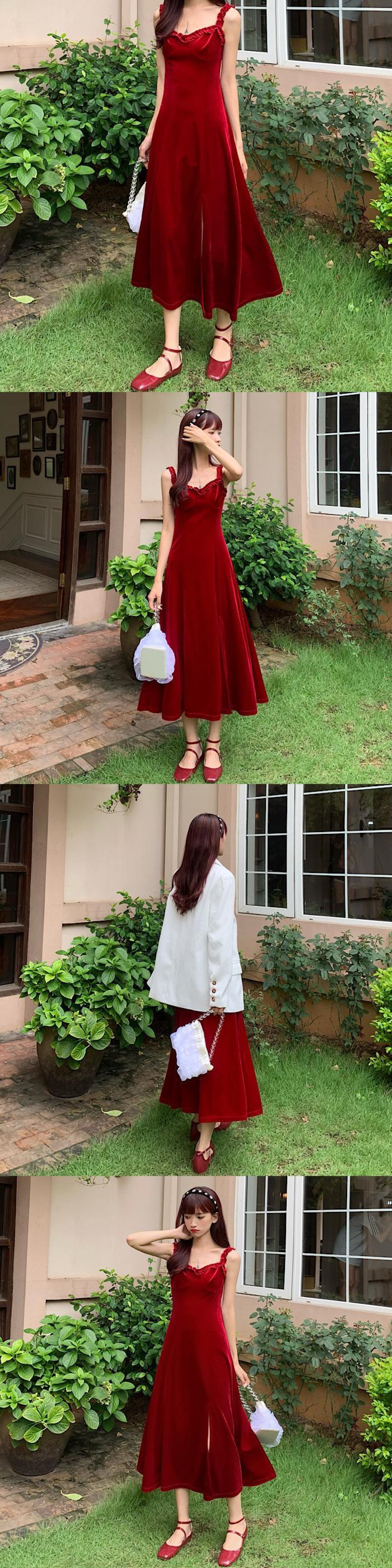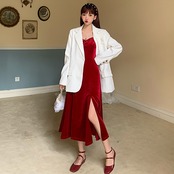 色:白いスーツ,ブルゴーニュワンピース