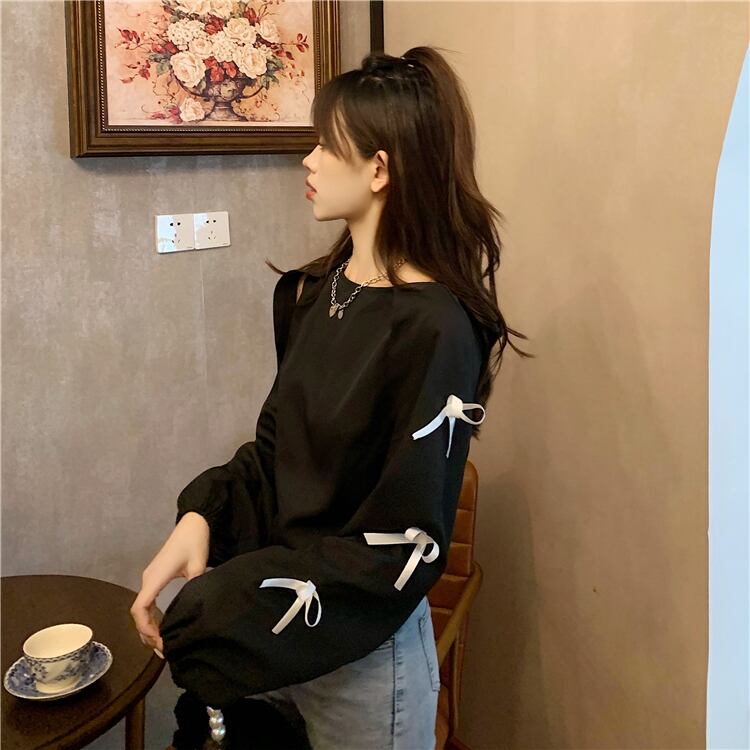 ラウンドネックリボンスリーブ 袖ホワイト 白シャツ かわいい 可愛い ガーリー 大人可愛い 大人かわいい フェミニン 大人ガーリー ステッチ 女性 レディース ゆめかわ18130577991 | nice import1