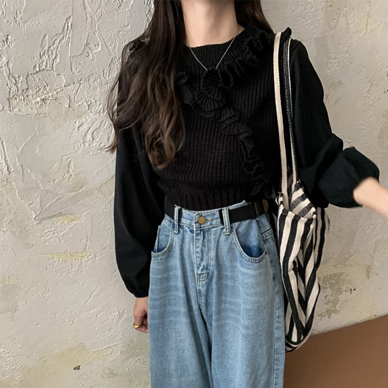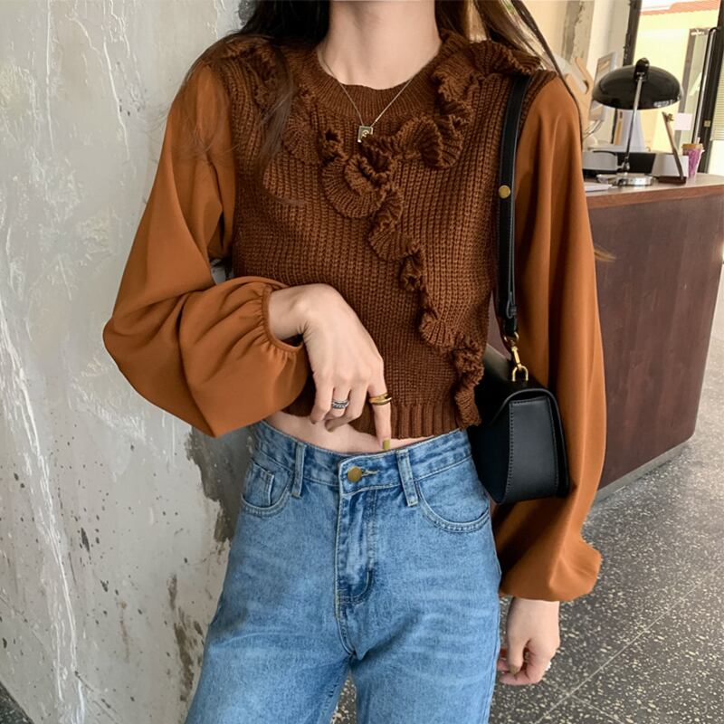 レースプルオーバー ラウンドネックニット セータースリーブ 袖クロップドトップス レディース かわいい 可愛い ガーリー 大人可愛い 大人かわいい フェミニン 大人ガーリー ステッチ 女性 レディース ゆめかわ22546913971 | nice import1