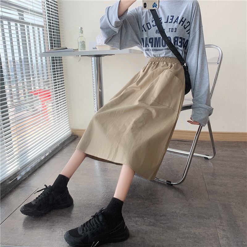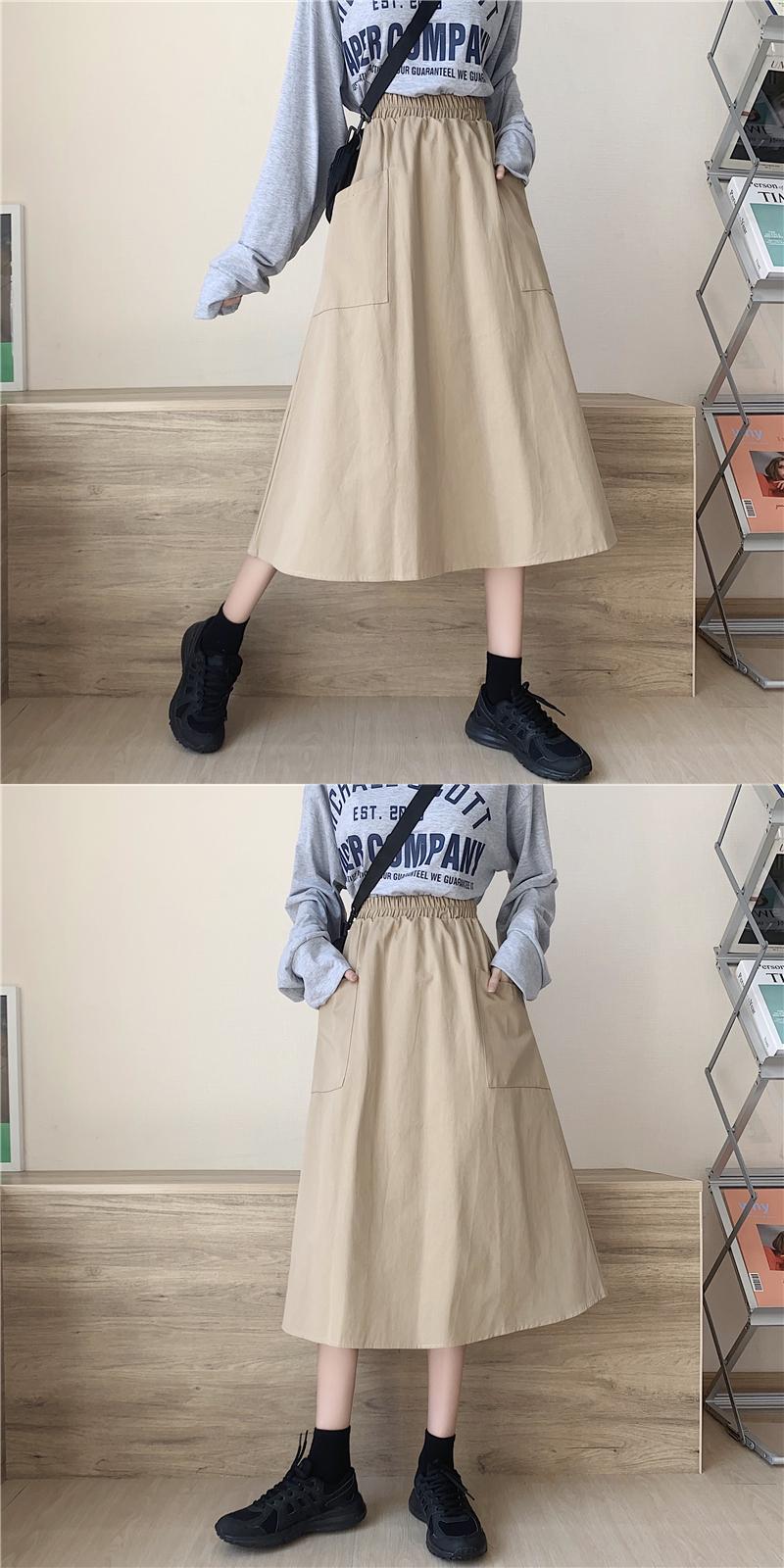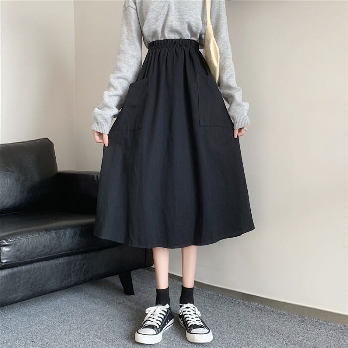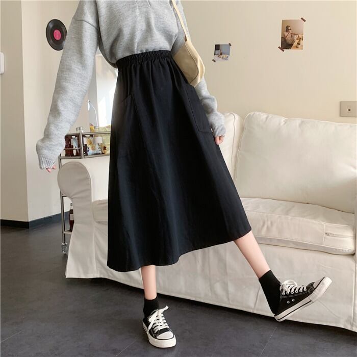 スタイルポケットスカート スタンダードハイウエストウエストルーズ薄手ソリッド カラーAライン ハイウェスト レトロ ソリッドカラー 女性 レディース ゆめかわ62411033017 | nice import1