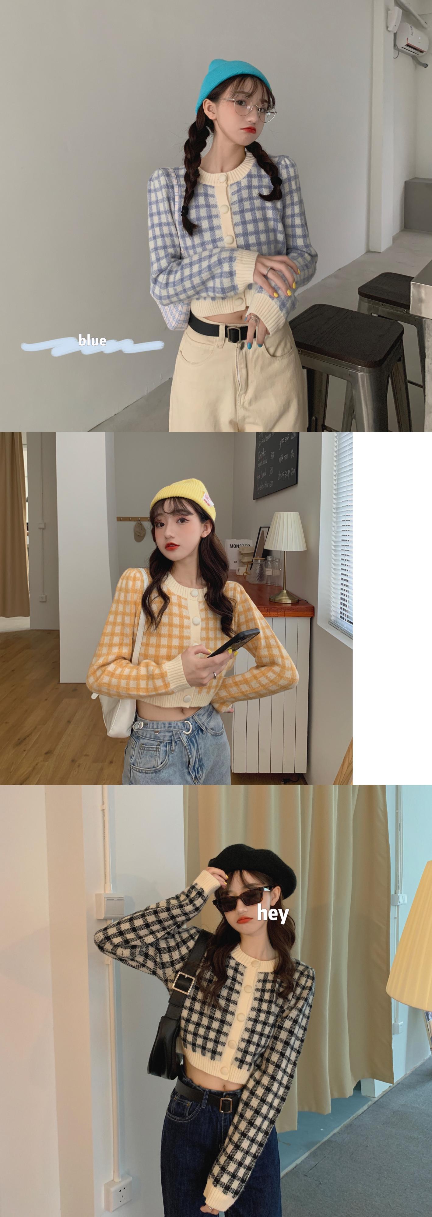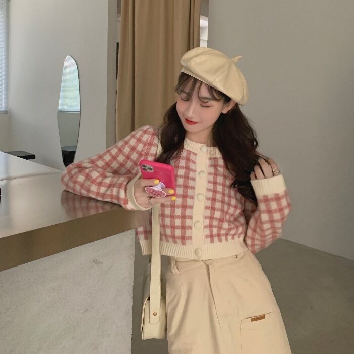 格子柄 チェックニット セーターレディーススタイルスタンダードラウンドネックショート ショート丈 ミニ ミニ丈ニットカーディガン 上着ジャケット 上着 コート レトロ 女性 レディース ゆめかわ1263340683 | nice import1
