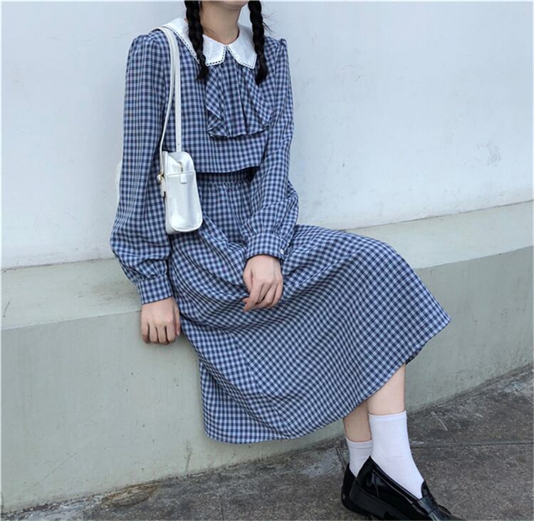 スタイルカラー長袖 長そでスリーブ 袖ハイウエストウエスト格子柄 チェックドレス ワンピース ハイウェスト ロング マキシロング丈 マキシ丈 女性 レディース ゆめかわ22615973930 | nice import1