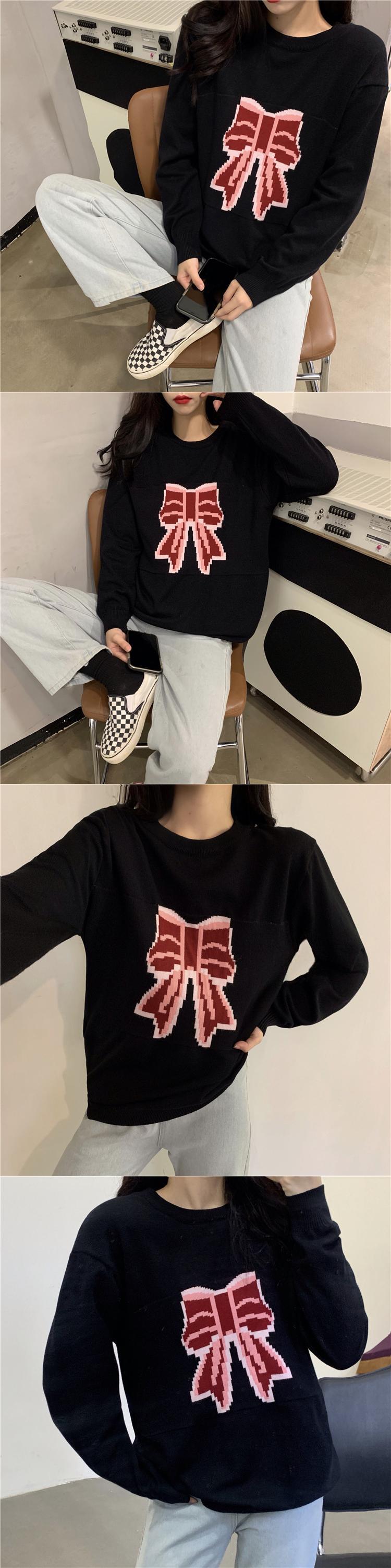 リボンプリント柄ニットプルオーバー シャツ ルーズニット セーターレディース ロング マキシロング丈 マキシ丈 かわいい 可愛い ガーリー 大人可愛い 大人かわいい フェミニン 大人ガーリー 女性 レディース ゆめかわ28165535799 | nice import1