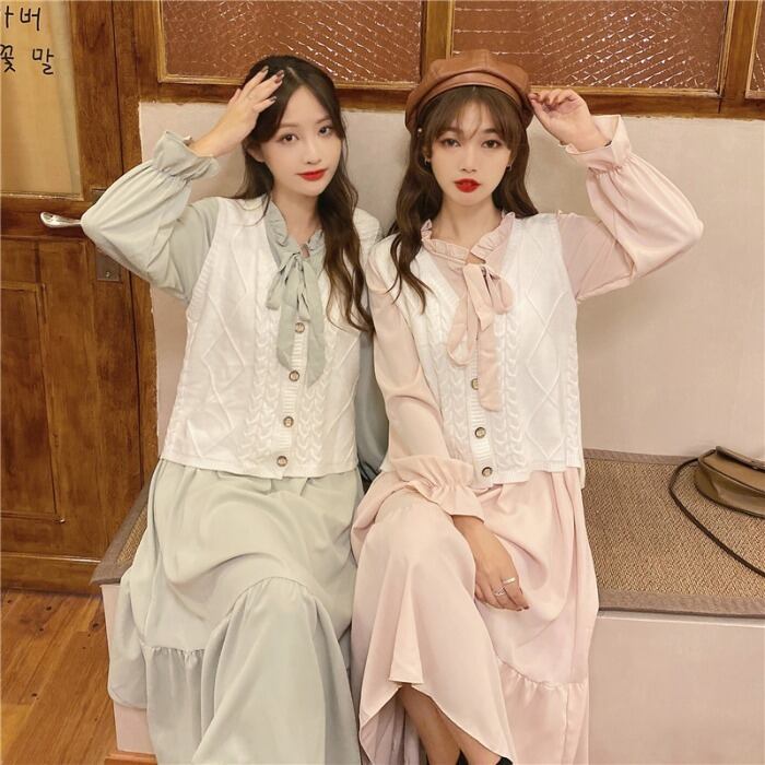 色:ピンクワンピース,薄緑のワンピース,アプリコットベストワンピース