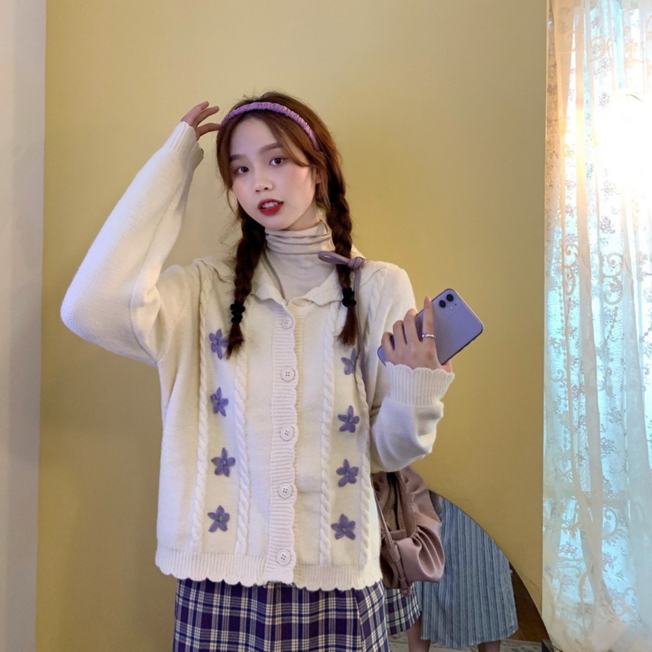 色:クリーミーホワイト,紫の