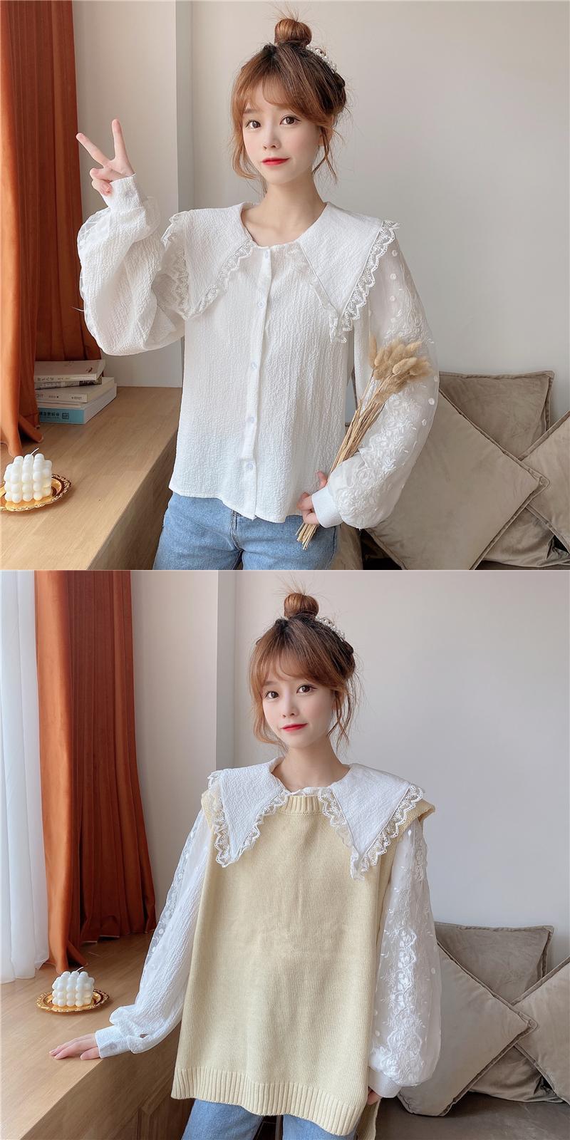 レースサイドカラースリーブ 袖ホワイト 白シャツ かわいい 可愛い ガーリー 大人可愛い 大人かわいい フェミニン 大人ガーリー 女性 レディース ゆめかわ11739144959 | nice import1