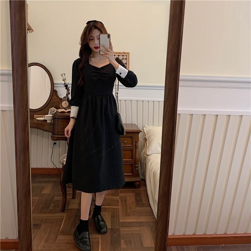スタンダードウエストレースVネックスリーブ 袖ドレス ワンピース薄手ブラック 黒スカート レトロ かわいい 可愛い ガーリー 大人可愛い 大人かわいい フェミニン 大人ガーリー ステッチ 女性 レディース ゆめかわ56072517535 | nice import1