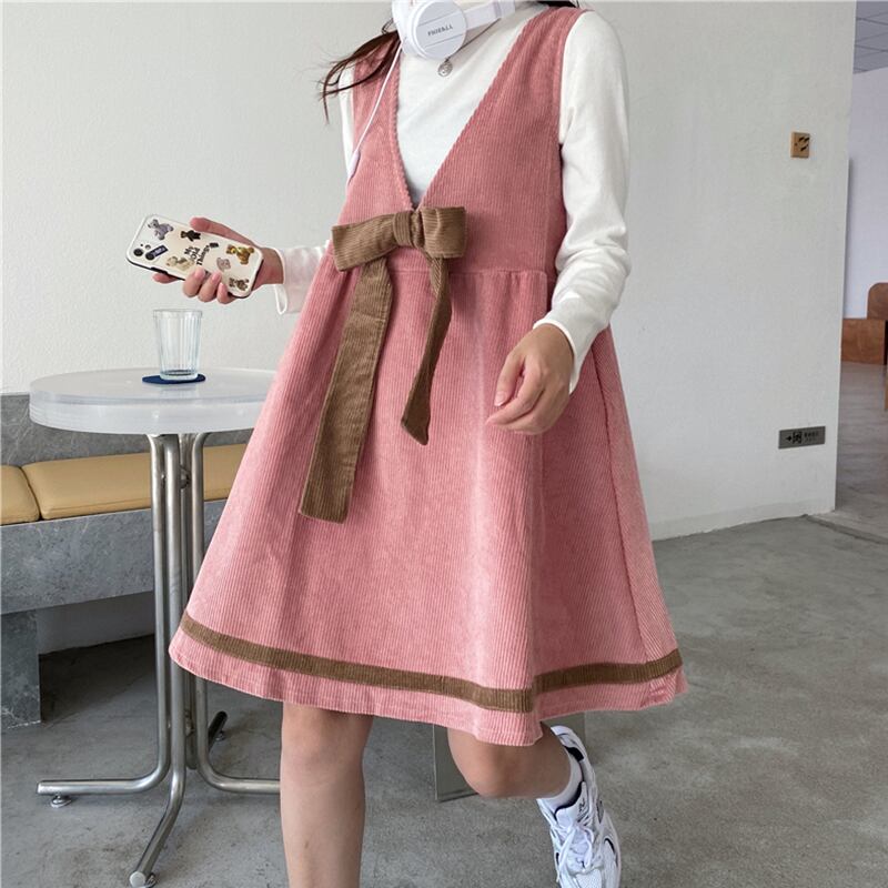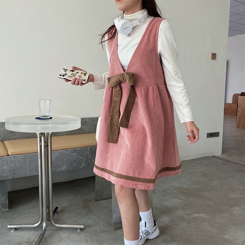 色:ピンクのサスペンダースカートワンピース,カーキスリングスカートワンピース,黒セーターシングル,白いセーターシングル