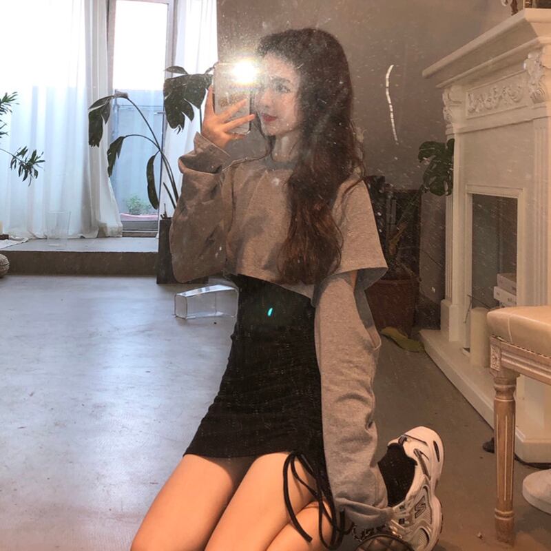 色:グレーのTシャツ,ブラックスカートワンピース,黒いTシャツ,グレーのスカートワンピース