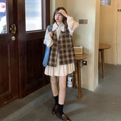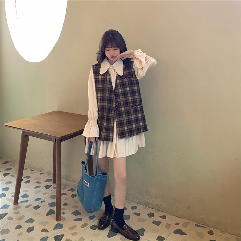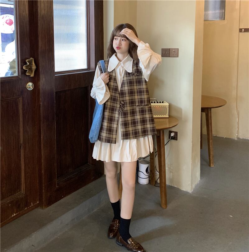 色:ワンピース,チェック柄ベスト,カードベストワンピース