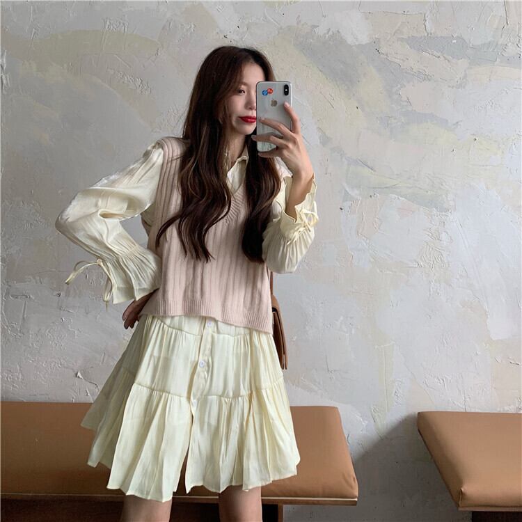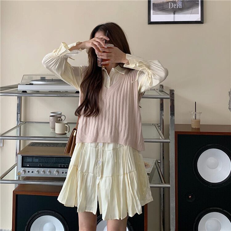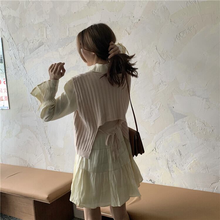 色:イエロースカートワンピース,アプリコットベストワンピース