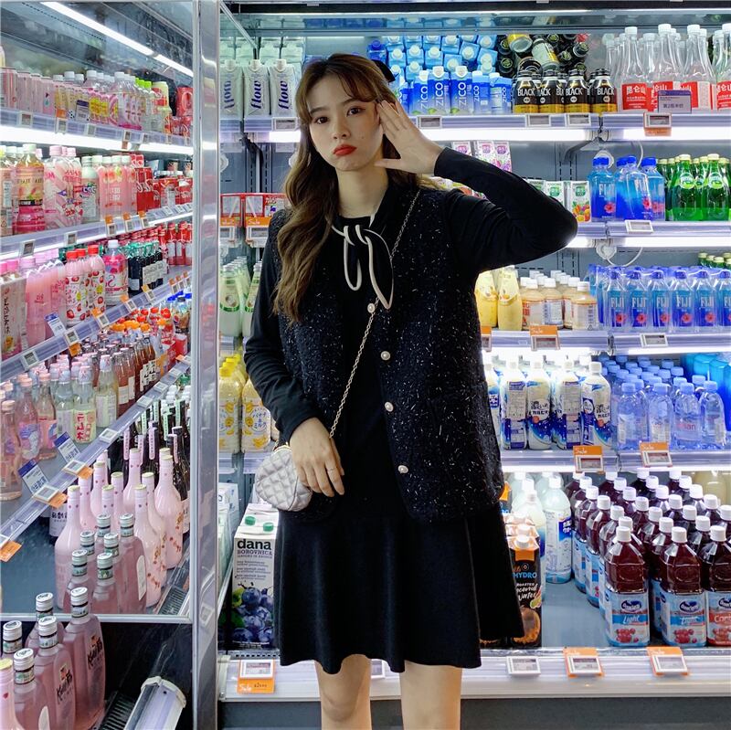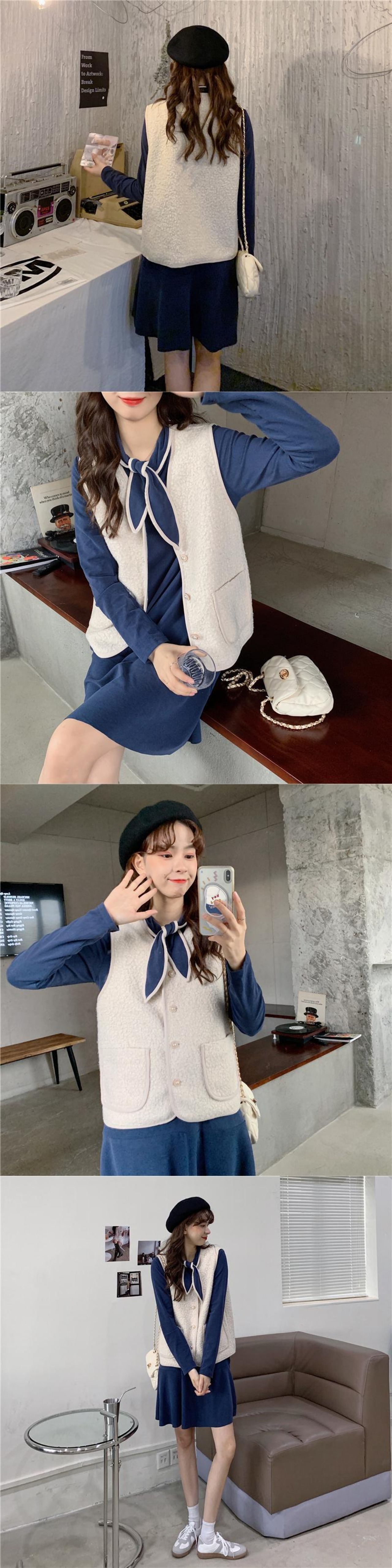 色:アプリコットウールベストワンピース,シングルブラックウールベスト,青いドレスワンピース,黒のワンピース