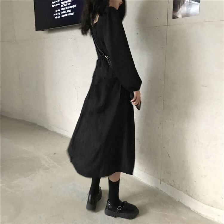 スタンダードカラーブラック 黒ドレス ワンピースウエスト薄手長袖 長そでスリーブ 袖 ロング マキシロング丈 マキシ丈 レトロ スクウェア スクエア 女性 レディース ゆめかわ76292550480 | nice import1