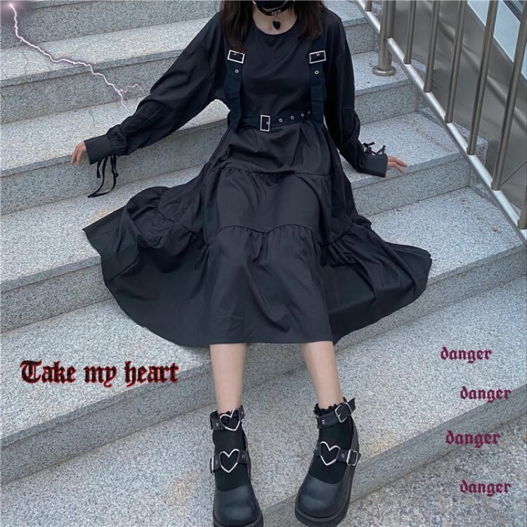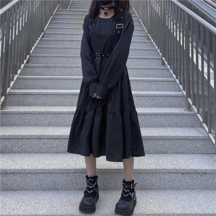 ダークスカート ラウンドネックハイウエストウエスト薄手長袖 長そでスリーブ 袖スタンダードドレス ワンピース ハイウェスト ロング マキシロング丈 マキシ丈 レトロ ステッチ 女性 レディース ゆめかわ99947965625 | nice import1