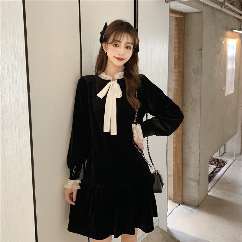 スカート スタイルリボンラウンドネック長袖 長そでスリーブ 袖ウエストドレス ワンピース ロング マキシロング丈 マキシ丈 かわいい 可愛い ガーリー 大人可愛い 大人かわいい フェミニン 大人ガーリー 女性 レディース ゆめかわ36039901709 | nice import1