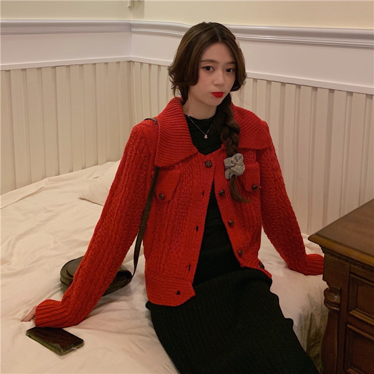 スタンダードニットショート ショート丈 ミニ ミニ丈ニット セーターコート カラーカーディガン 上着トップス レディース レトロ 女性 レディース ゆめかわ63486766693 | nice import1