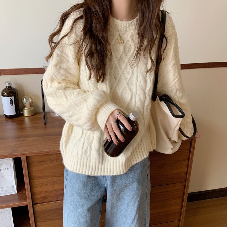 スタンダードルーズラウンドネックニットプルオーバー ブラウス スタイルニット セーターレディース ロング マキシロング丈 マキシ丈 レトロ シャツ トップス 女性 レディース ゆめかわ23040952313 | nice import1