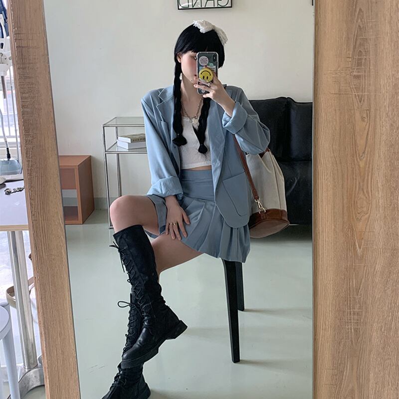 色:ヘイズブルースーツワンピース,プリーツスカートワンピース