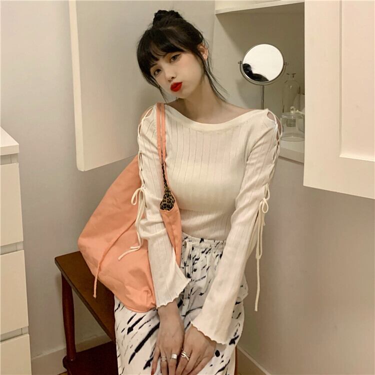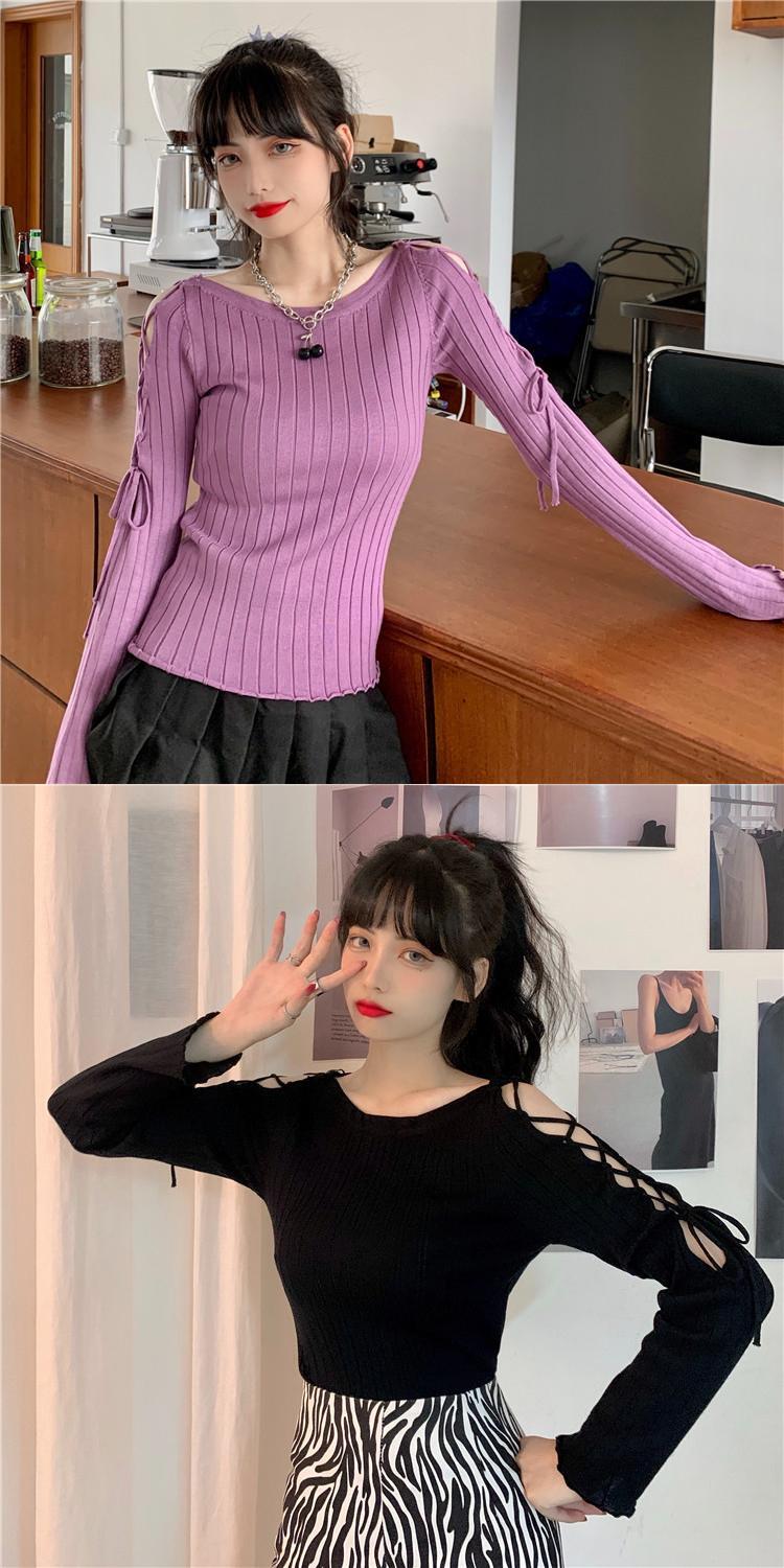 ニット セーターラウンドネック長袖 長そでスリーブ 袖ショート ショート丈 ミニ ミニ丈ニットトップス ロング マキシロング丈 マキシ丈 かわいい 可愛い ガーリー 大人可愛い 大人かわいい フェミニン 大人ガーリー 肩出し オフショルダー オフショル 女性 レディース ゆめかわ37347917702 | nice import1