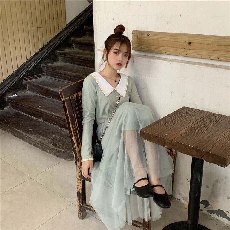 スカート カラーロング マキシ ロング丈 マキシ丈ウエストメッシュ レース シースルー チュール オーガンジードレス ワンピース マキシロング丈 長袖 長そで かわいい 可愛い ガーリー 大人可愛い 大人かわいい フェミニン 大人ガーリー ステッチ 女性 レディース ゆめかわ52732268803 | nice import1