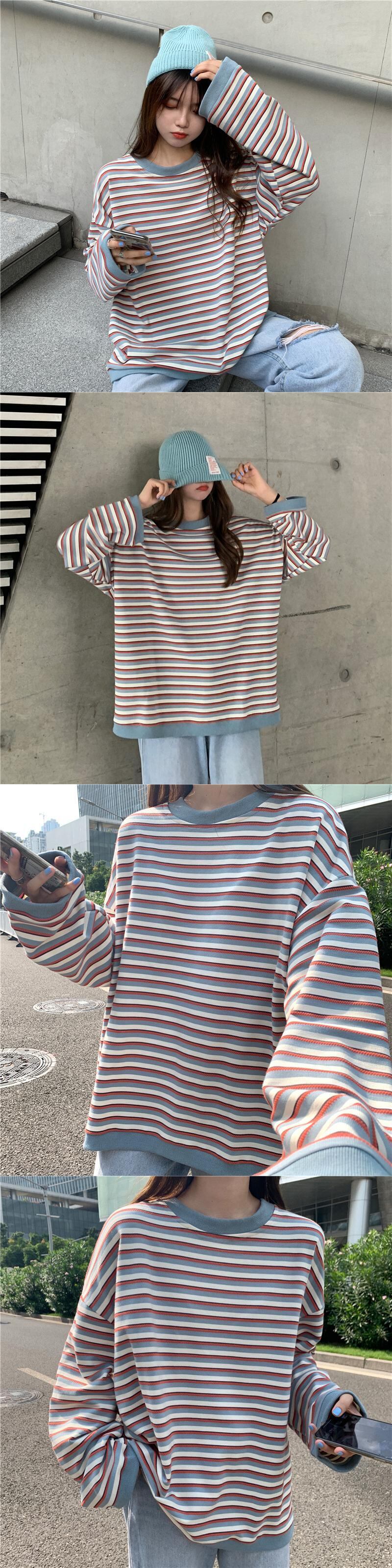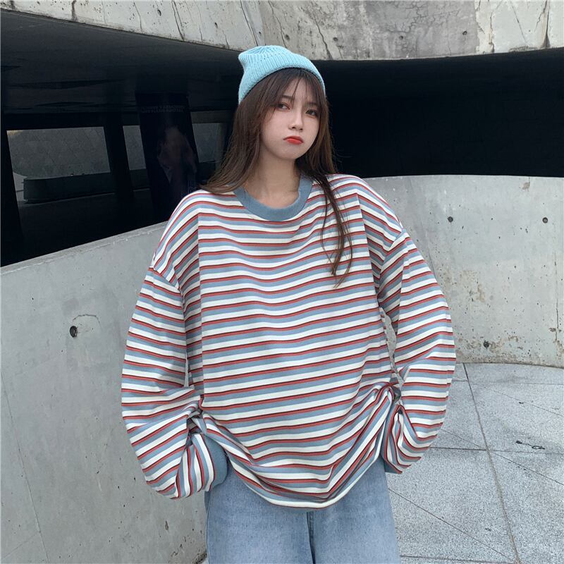 スタイル薄手ニット セータールーズスタンダードストライプラウンドネックプルオーバー ブラウス レディース ロング マキシロング丈 マキシ丈 レトロ シャツ トップス 女性 レディース ゆめかわ38755388481 | nice import1