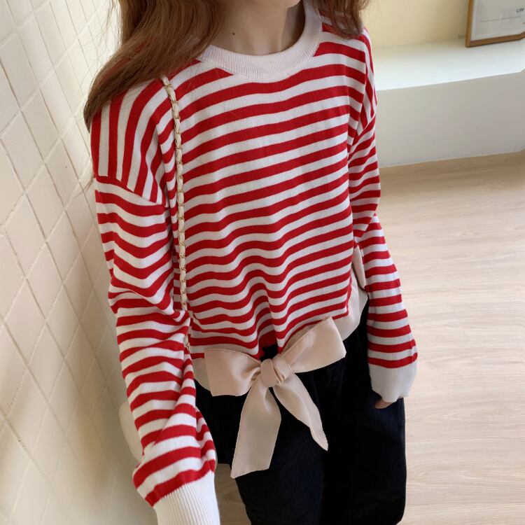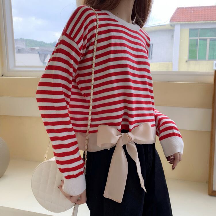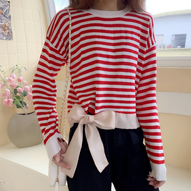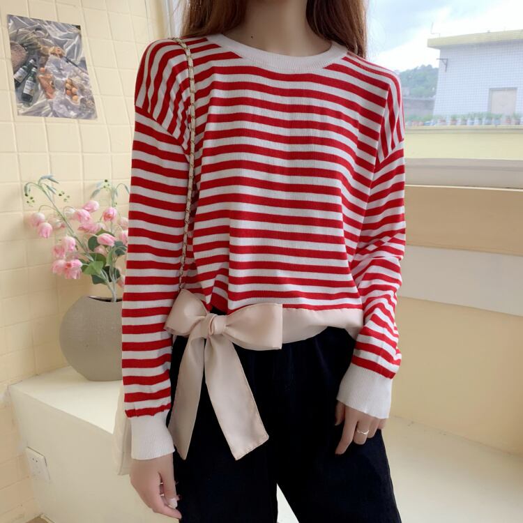 リボン長袖 長そでスリーブ 袖ラウンドネックカラーストライプショート ショート丈 ミニ ミニ丈Tシャツ トップス ロング マキシロング丈 マキシ丈 かわいい 可愛い ガーリー 大人可愛い 大人かわいい フェミニン 大人ガーリー 女性 レディース ゆめかわ83216775151 | nice import1