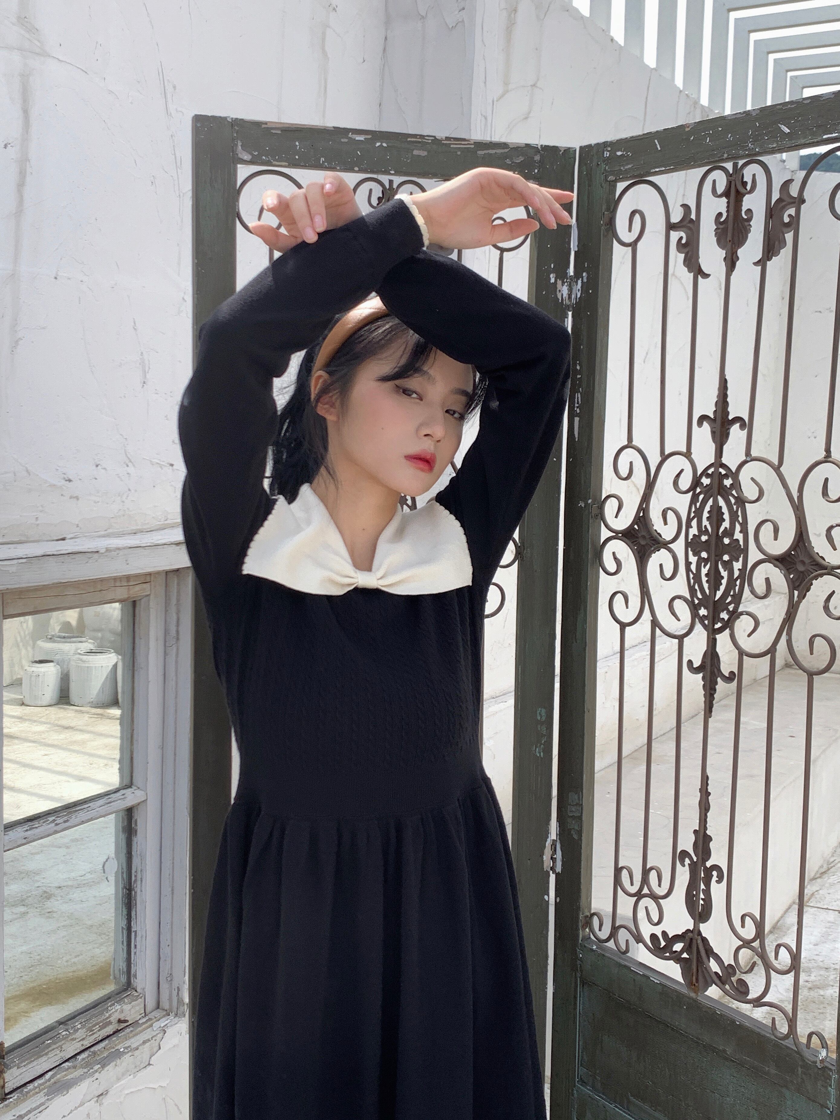 カラーリボンラウンドネック長袖 長そでスリーブ 袖フィットニットニット セータードレス ワンピース ロング マキシロング丈 マキシ丈 かわいい 可愛い ガーリー 大人可愛い 大人かわいい フェミニン 大人ガーリー 女性 レディース ゆめかわ14557444282 | nice import1