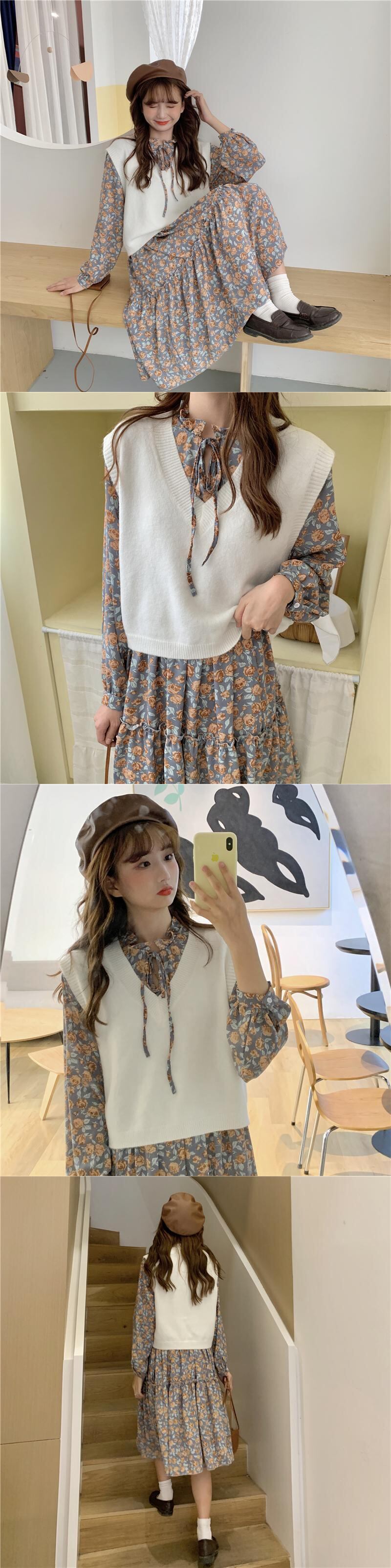 花柄 お花 フラワードレス ワンピースVネックニットニット セーター ロング マキシロング丈 マキシ丈 かわいい 可愛い ガーリー 大人可愛い 大人かわいい フェミニン 大人ガーリー 女性 レディース ゆめかわ54322750702 | nice import1