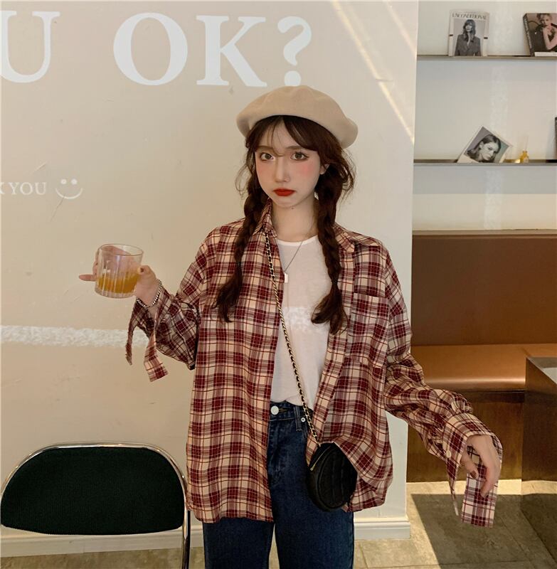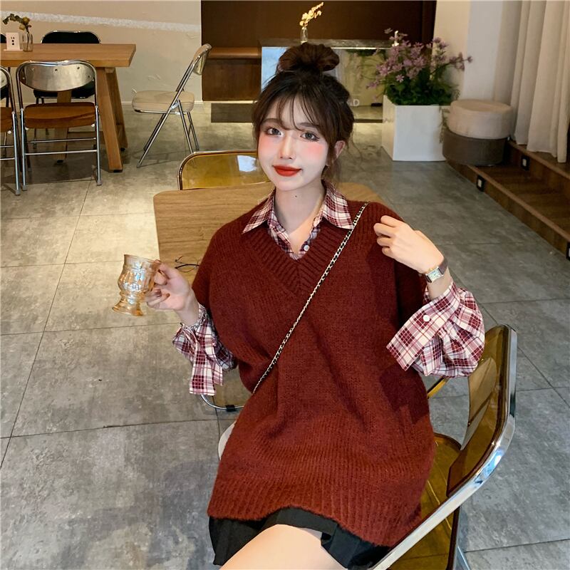 色:赤レンガベストシングル,チェック柄シャツシングル