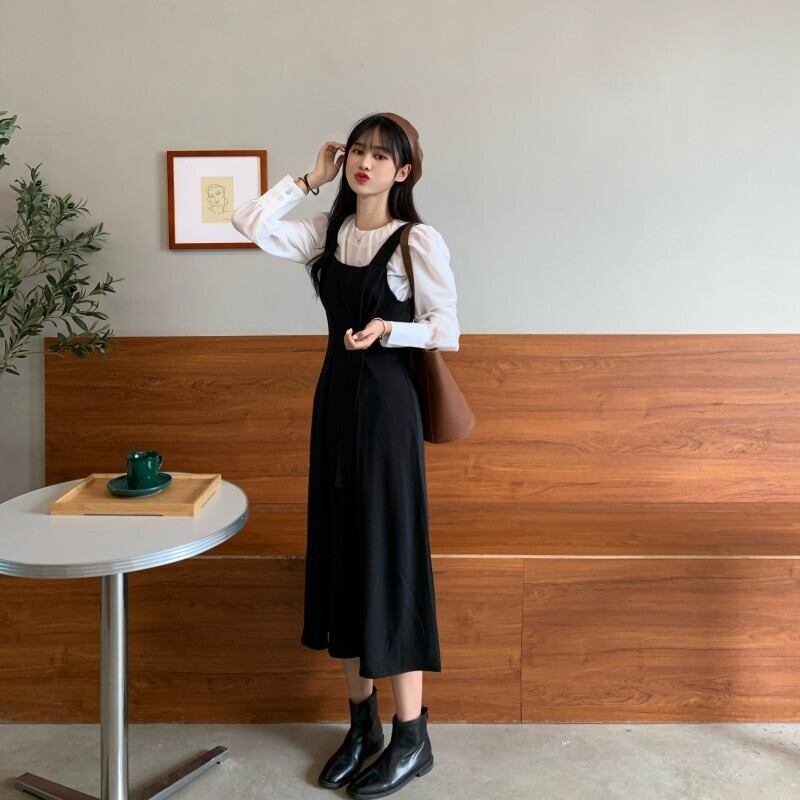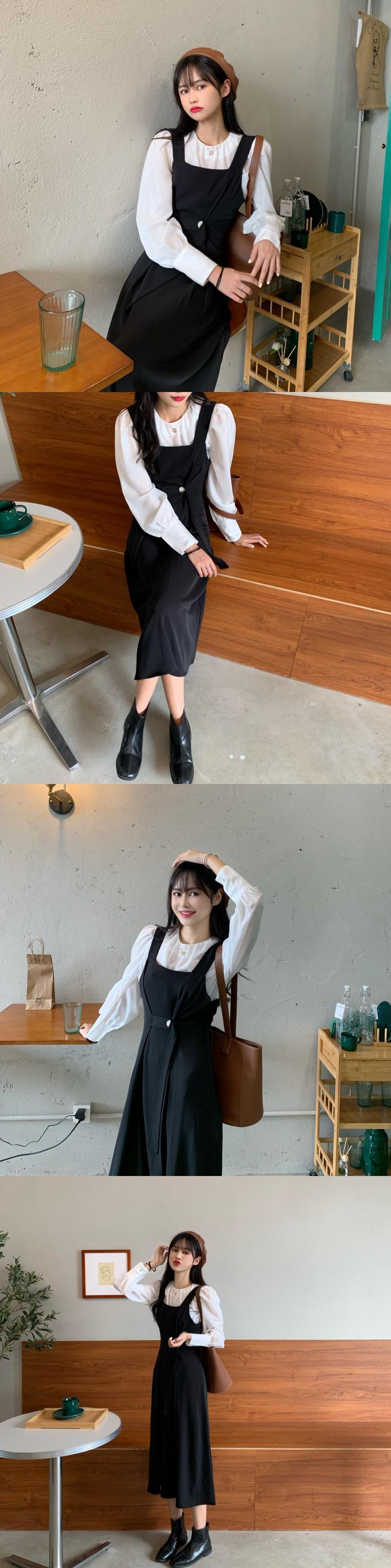 色:ホワイトトップ,ブラックストラップスカートワンピース
