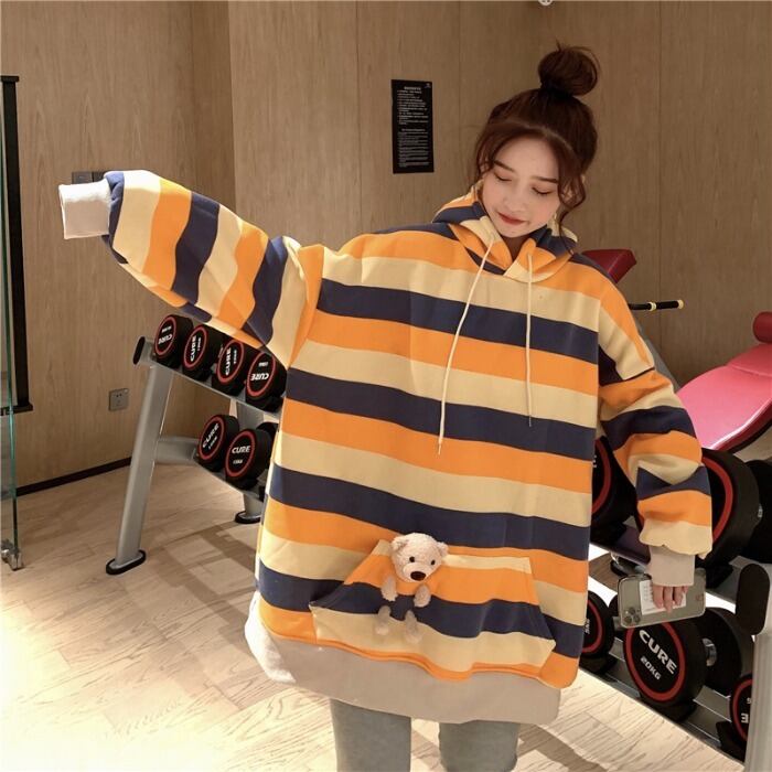 ベルベットルーズストライプニット セーターレディーススタンダードスタイルフードトップス ロング マキシロング丈 マキシ丈 レトロ 女性 レディース ゆめかわ62966559940 | nice import1