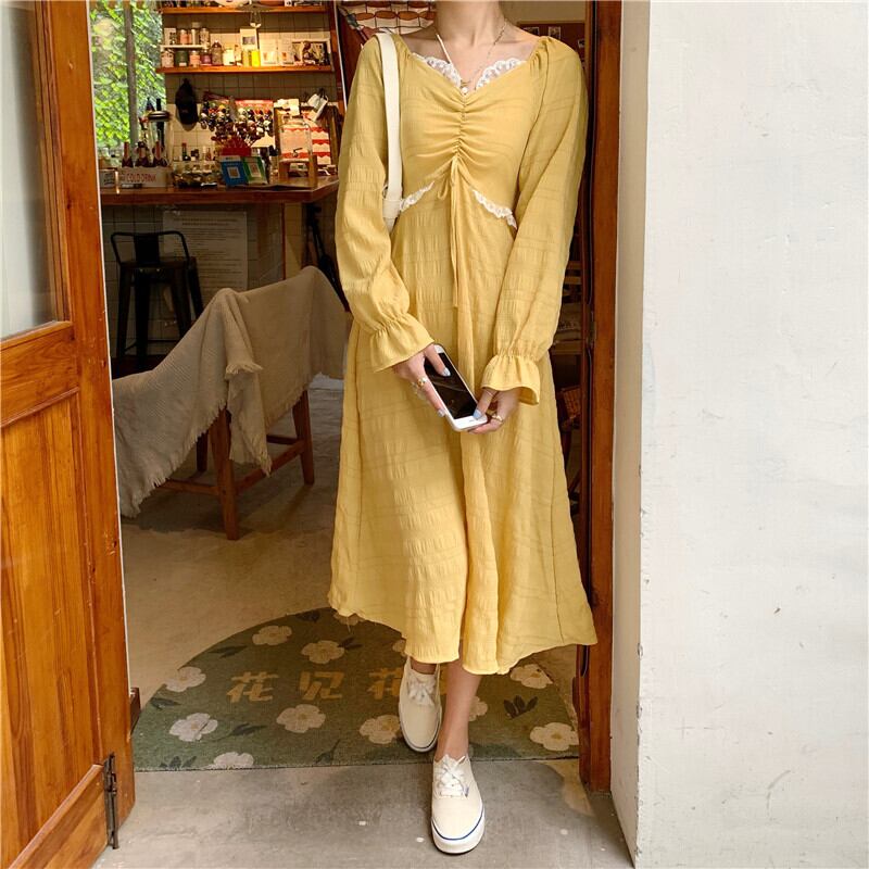 カラープリーツレースハイウエストウエストドレス ワンピース ハイウェスト かわいい 可愛い ガーリー 大人可愛い 大人かわいい フェミニン 大人ガーリー スクウェア スクエア 女性 レディース ゆめかわ21884541325 | nice import1
